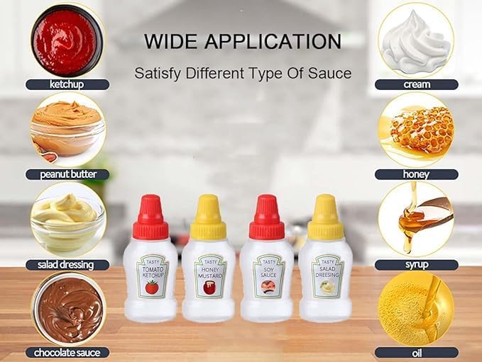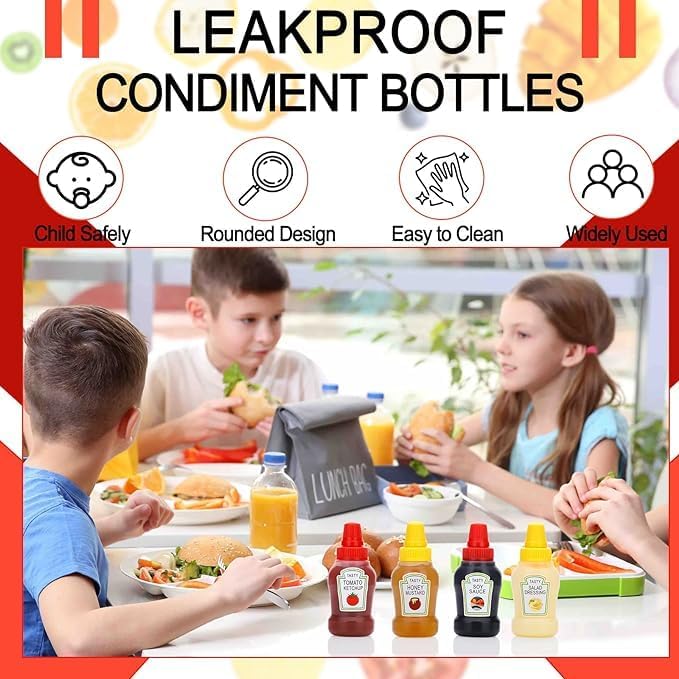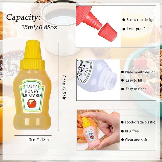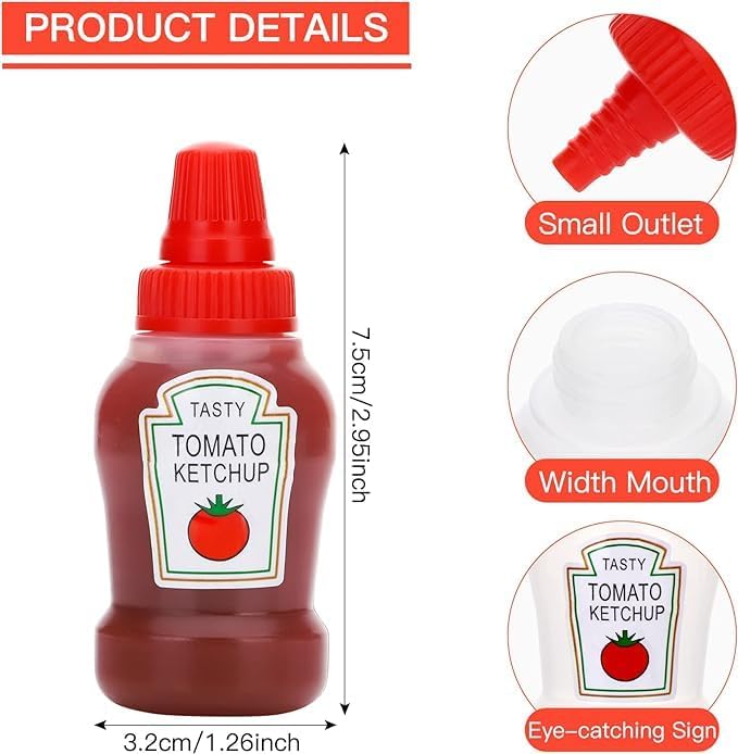 Mini Ketchup Bottle for Bento Box Accessories, 25ml Condiment Squeeze Bottles Empty Plastic Salad Dressing Container Tomato Ketchup Condiments Squirt Squeezable Jar for Sauces Syrup
