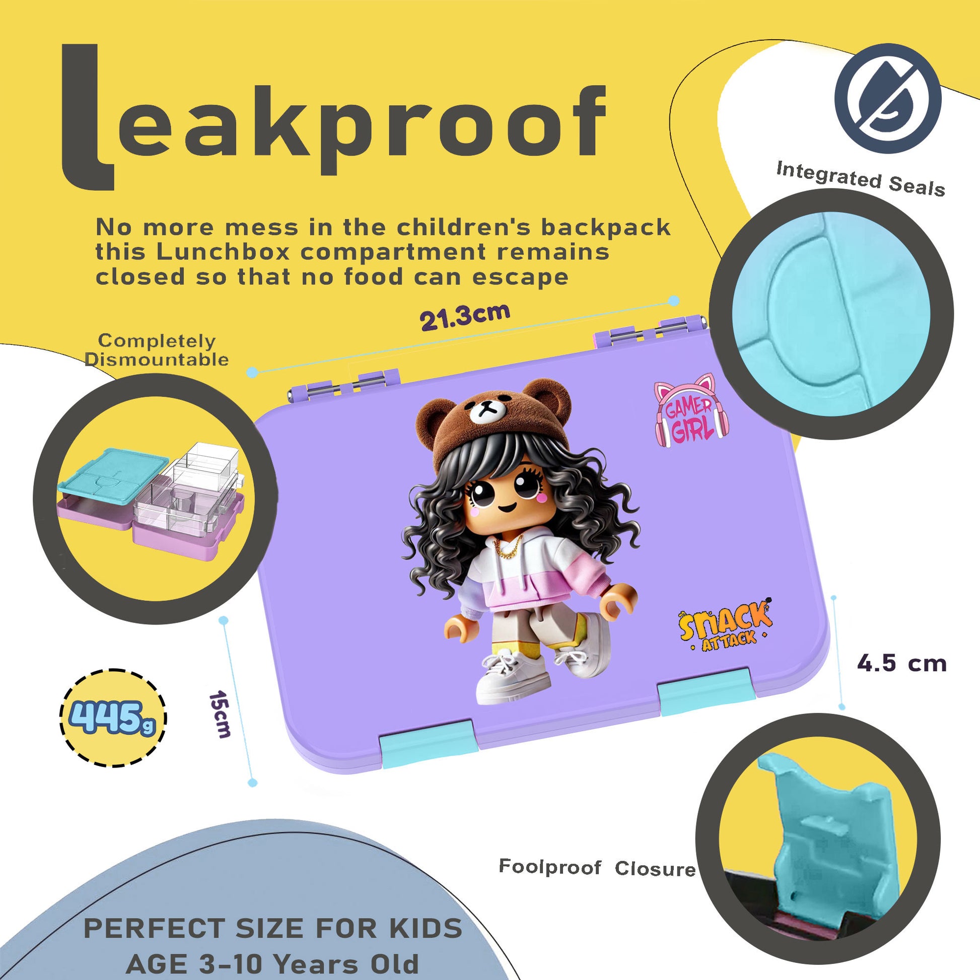Lunch Box for Kids – 4/6 Compartments Gamer Girl theme