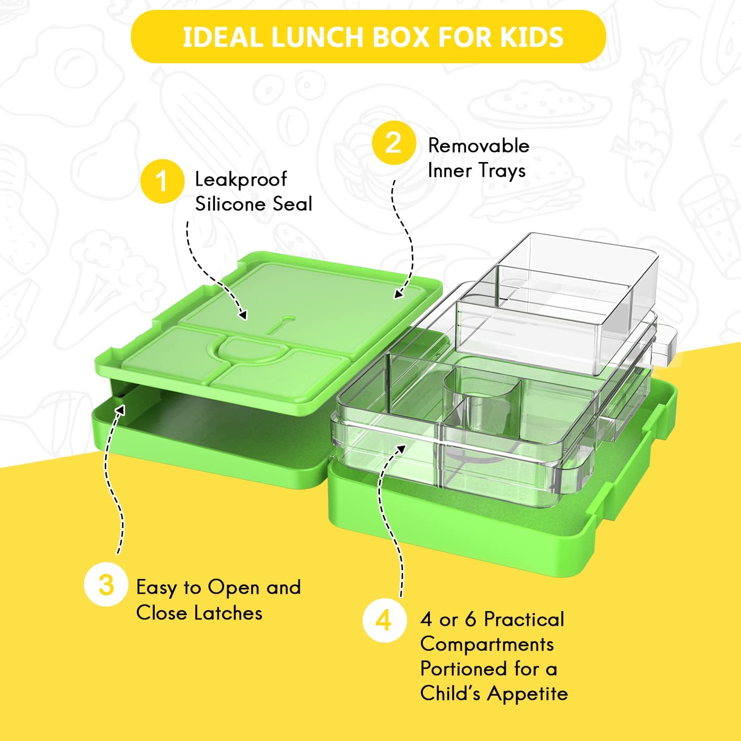 Lunch Box for Kids – 4/6 Compartments Green Dino in Egg