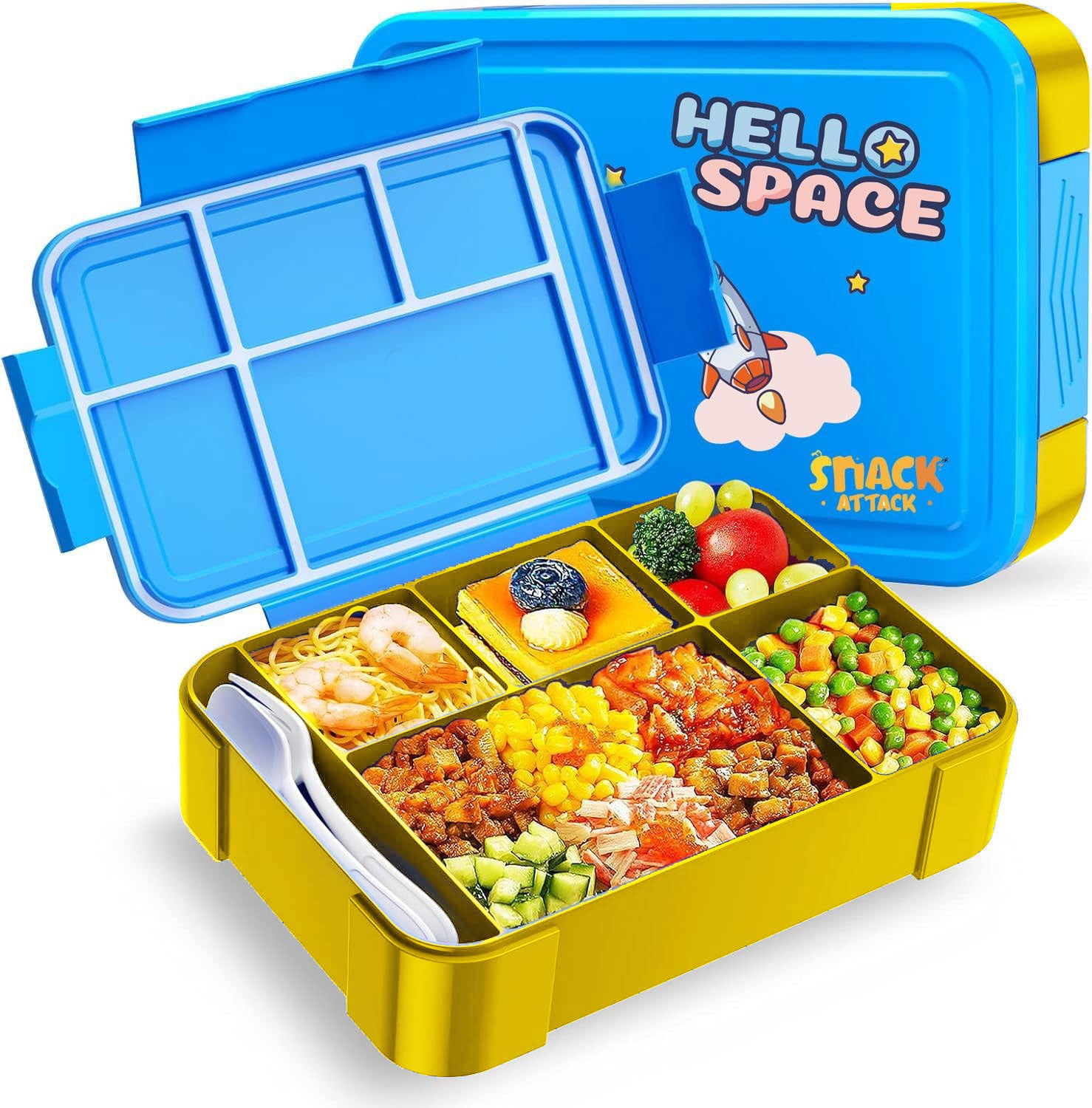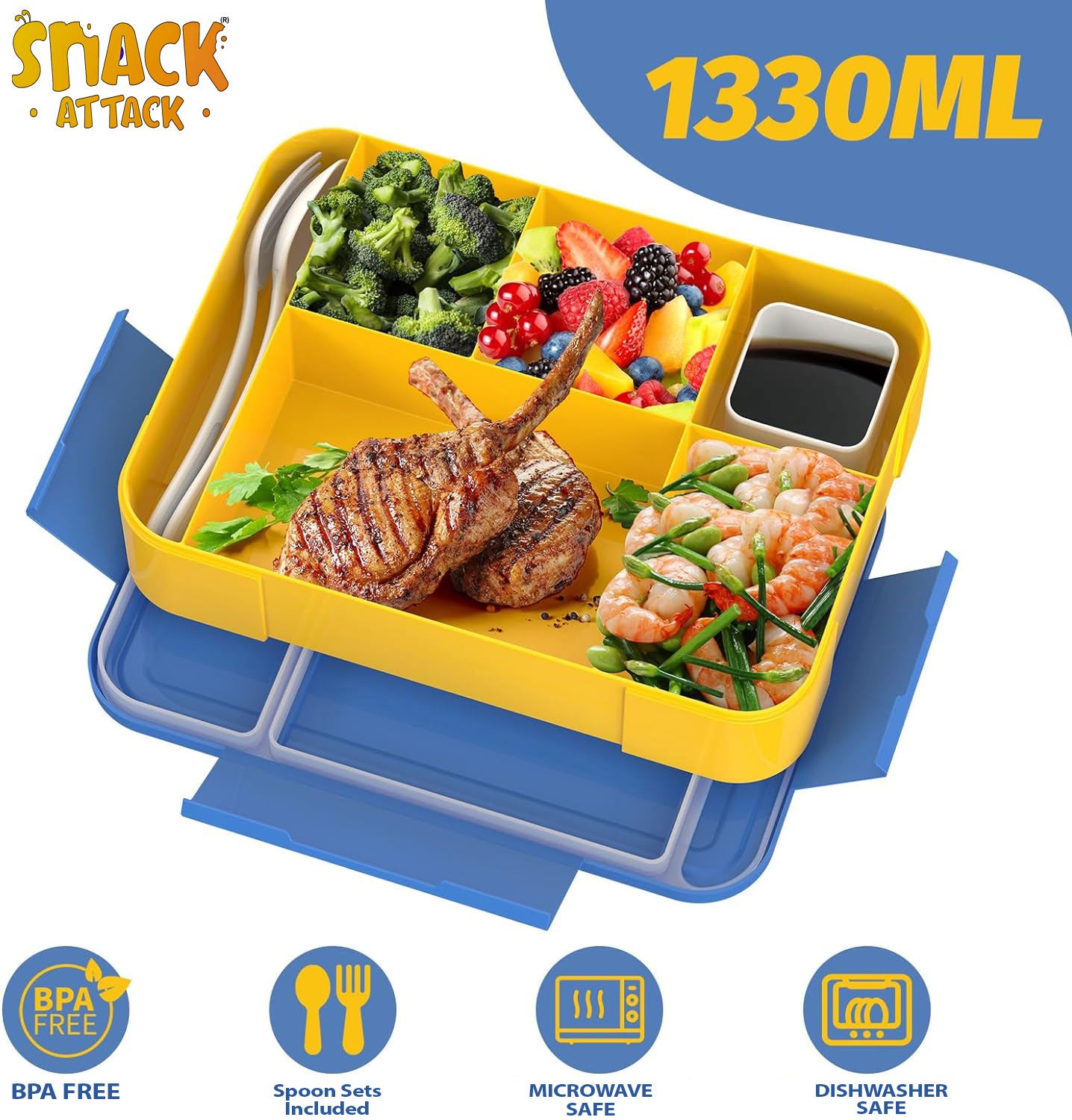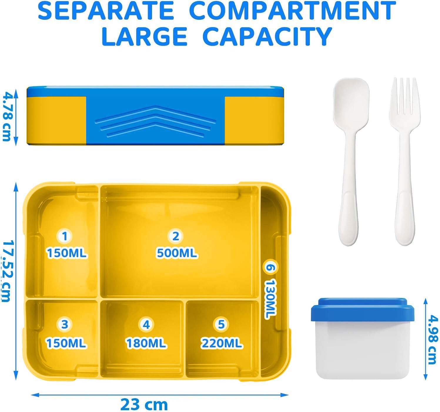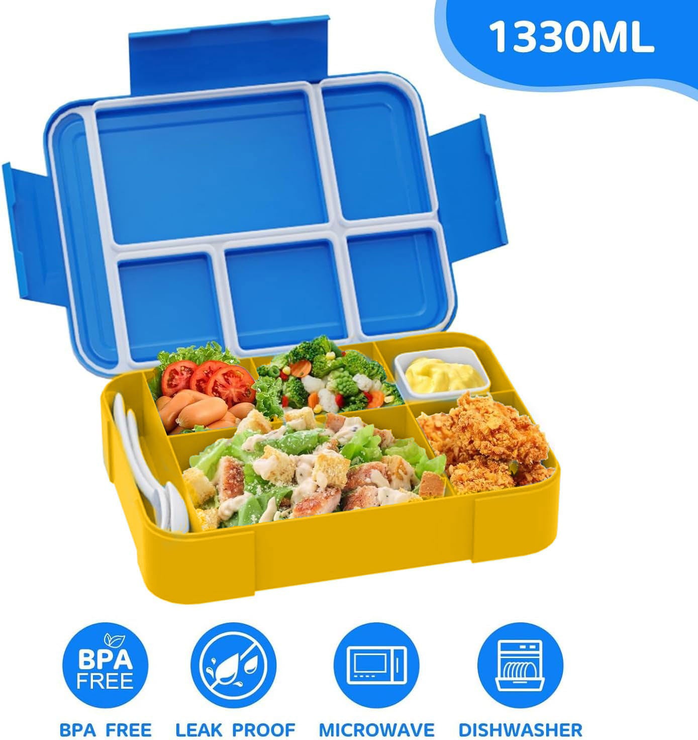 Lunch Box for kids with Compartments: Capacity 1330ml with 5 compartments, serve main food, fruit, salad and sauce separately. helps the kids balance nutrition and control food distribution.