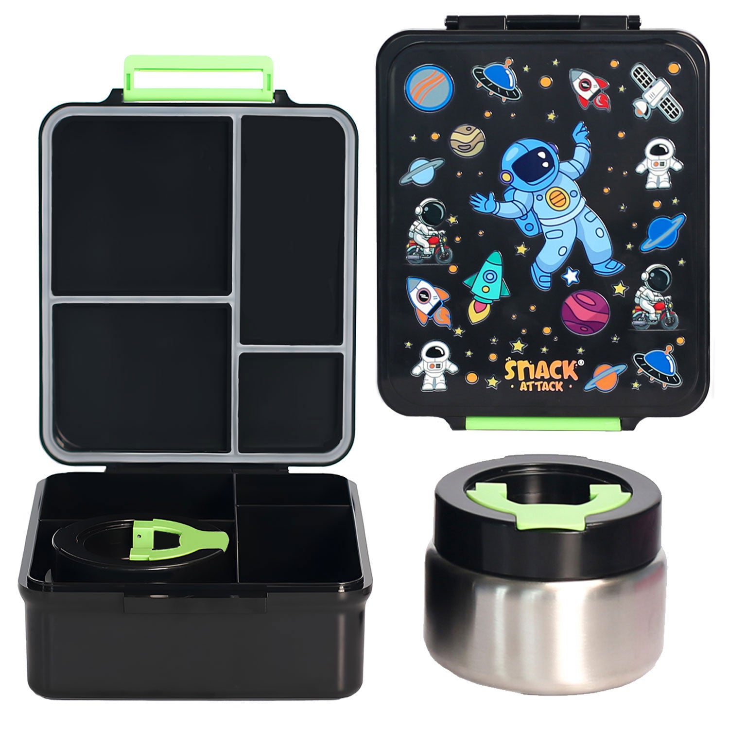 SA Bento Lunch Box for Kids school with 9.7oz Soup thermos Jar Black Astro)