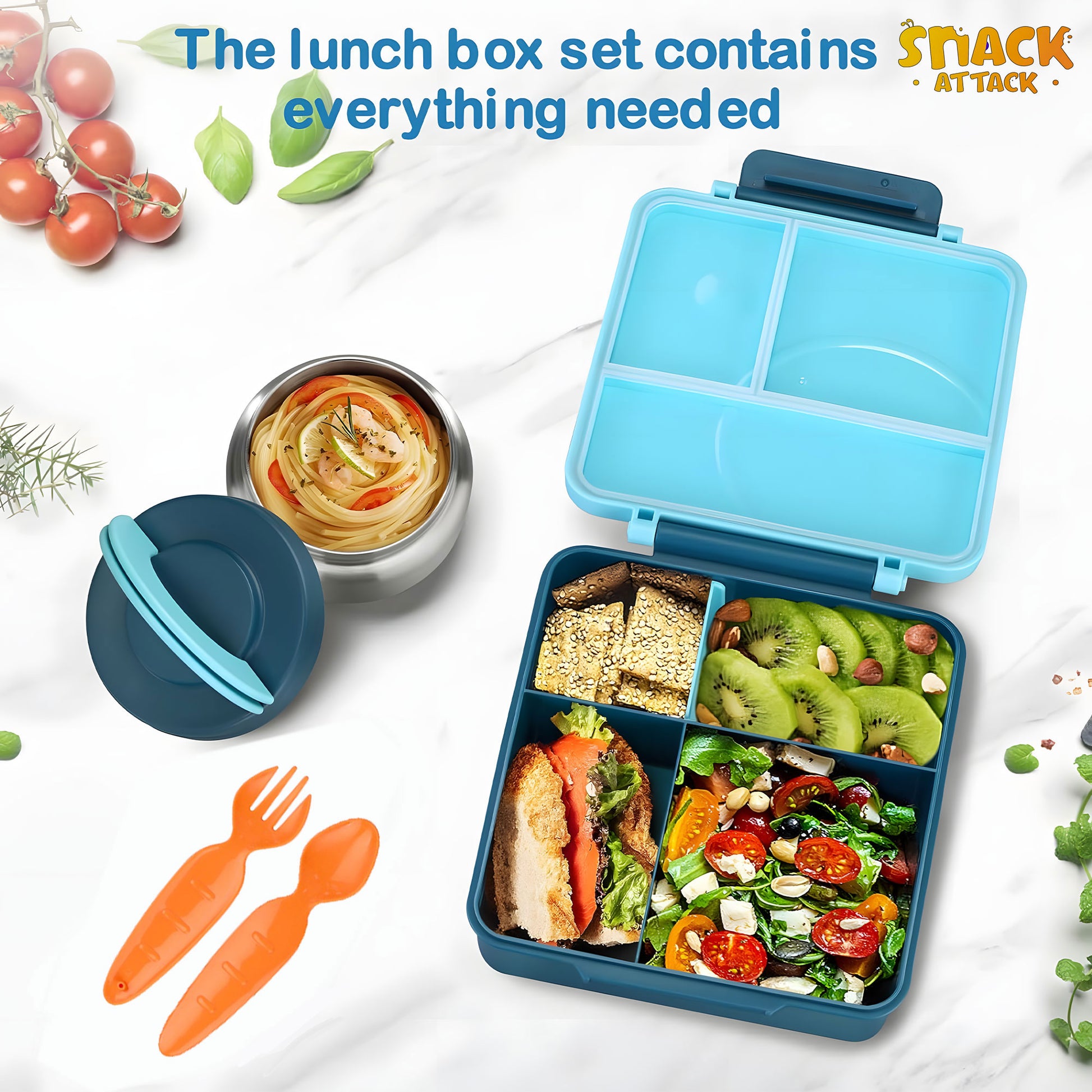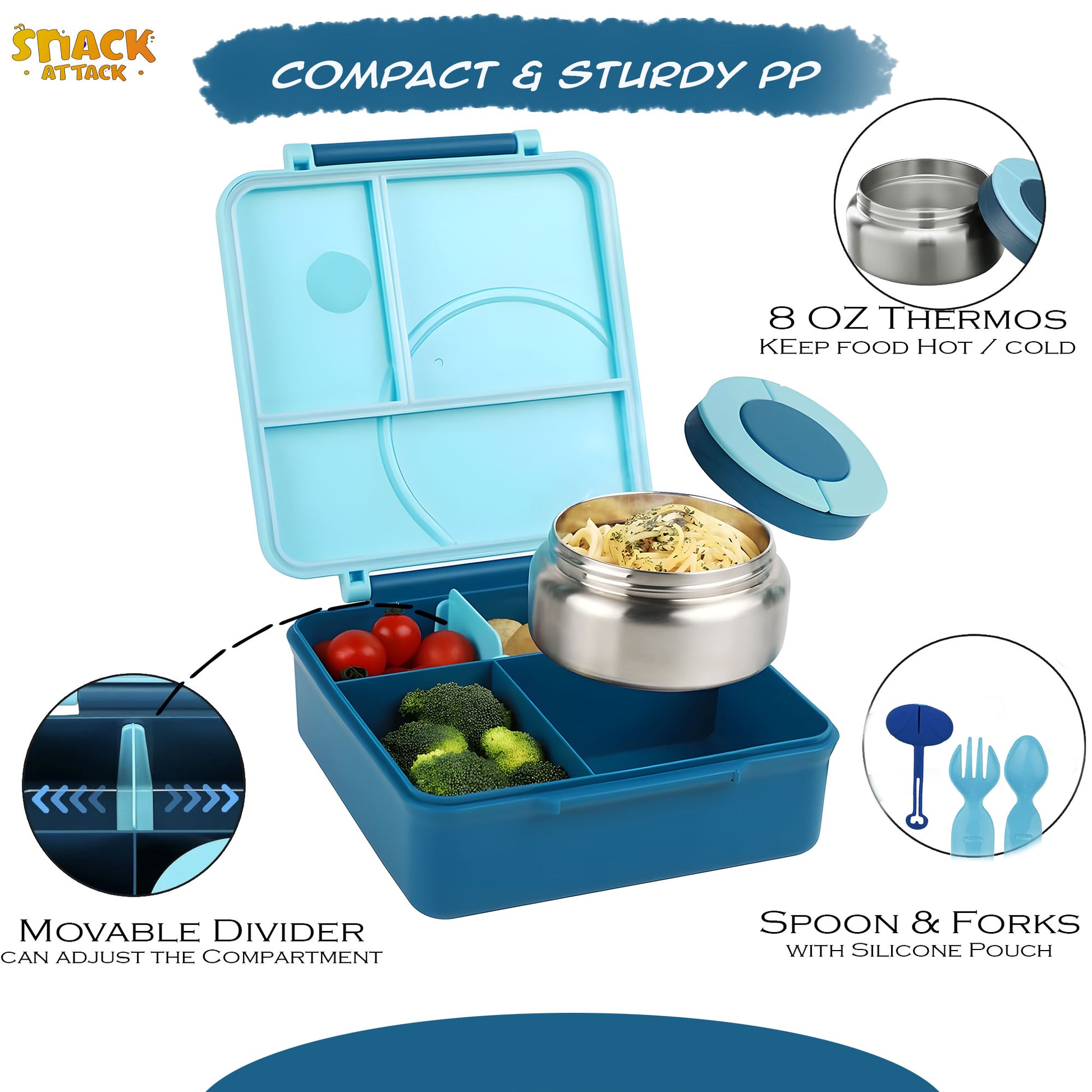 🟢More accessible, Faster Lunch Prep: Kids eat better, and now you can deliver hot soup and chilled strawberries without using a million little lunch boxes. Snack Attack is a kid's bento box with a Thermos that packs hot and cold food. This insulated lunch box for kids is perfect for hot lunches, cold meals, or snacks. You won't find another hot food-insulated lunch box that works like Snack Attack ! The product is suitable for children over three years old.