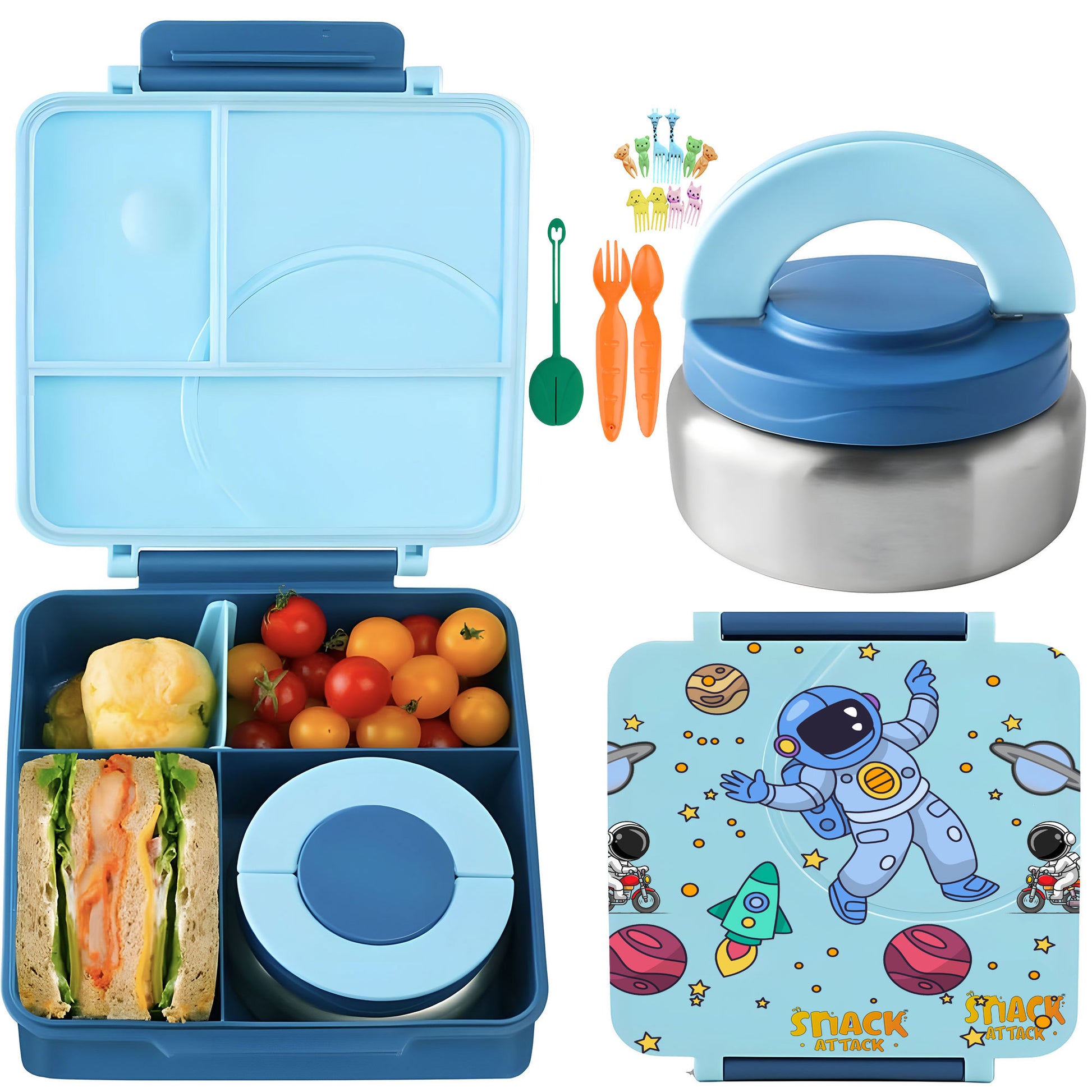 SA Bento Lunch Box for Kids school with 9.7oz Soup thermos Jar Blue Astro)