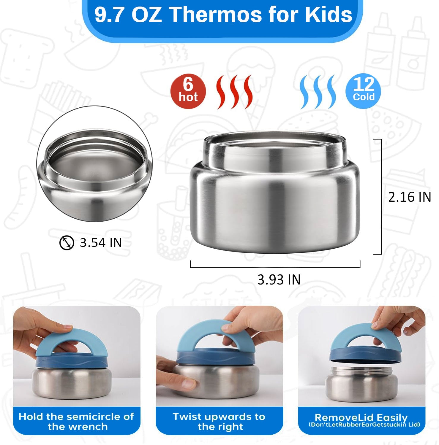• 💯 Ideal size: Children's Thermos is the ideal size for children. The stainless steel soup Thermos bottle is a double wall, and the high temperature is maintained for 3-6 hours; Keep cold for 10-12 hours. Use Tips and Notes—To keep food hot or cold for a longer time, we recommend preheating/precooling with hot water/ice water for 5~10 minutes before putting food or soup into the food jar and then putting the food in the wide-mouth soup Thermos is also very convenient for cleaning.