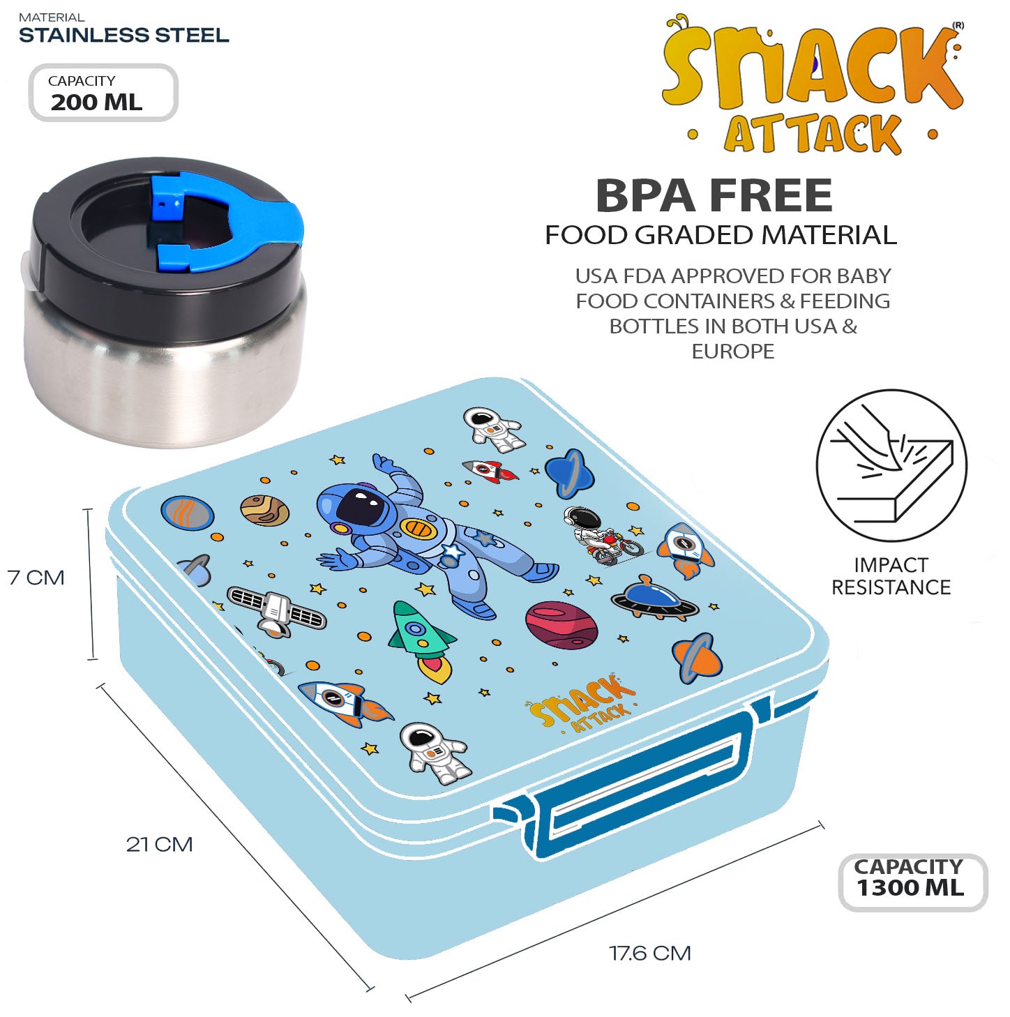 SA Bento Lunch Box for Kids school with 9.7oz Soup thermos Jar Blue Astro)