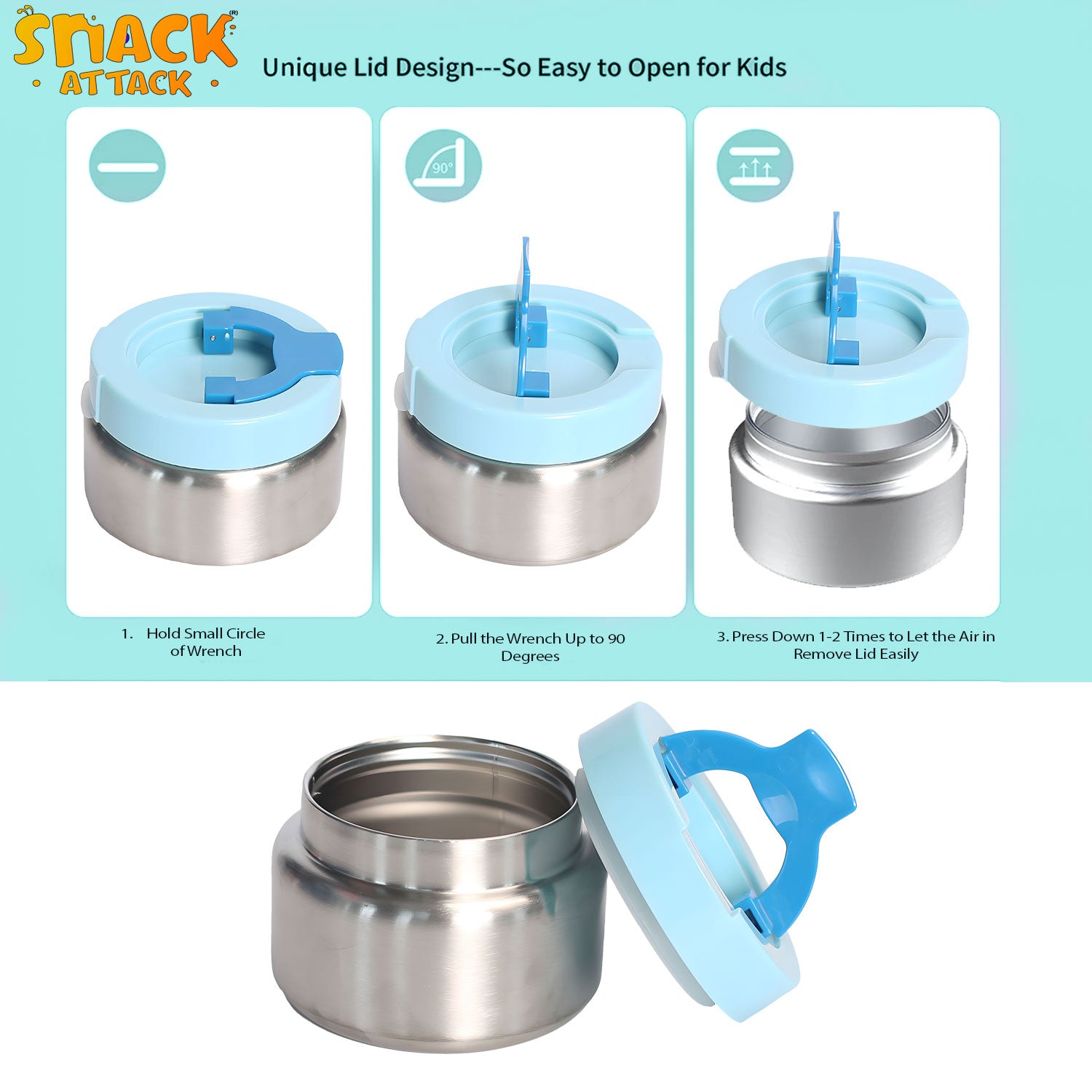 🟢More accessible, Faster Lunch Prep: Kids eat better, and now you can deliver hot soup and chilled strawberries without using a million little lunch boxes. Snack Attack is a kid's bento box with a Thermos that packs hot and cold food. This insulated lunch box for kids is perfect for hot lunches, cold meals, or snacks. You won't find another hot food-insulated lunch box that works like Snack Attack ! The product is suitable for children over three years old.
