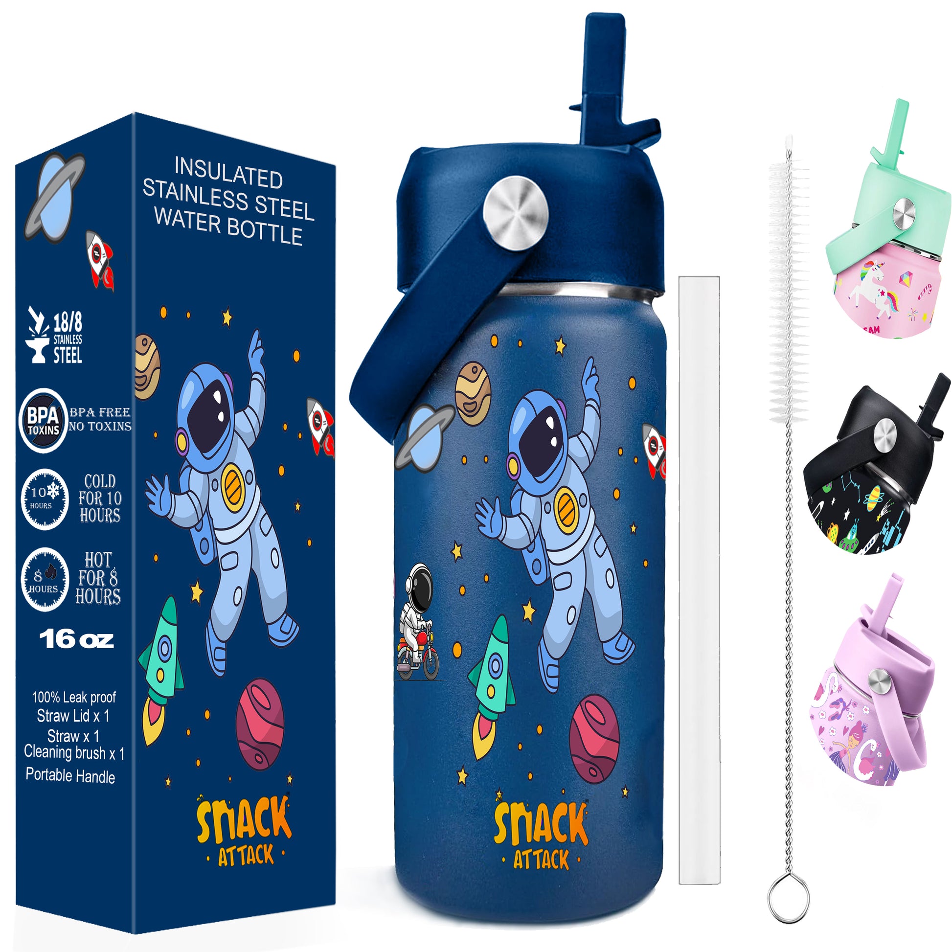 - ★IDEAL GIFT GIVING & GUARANTEE: The Snack Attack team is committed to providing superior kids-insulated water bottles. It's an ideal gift for your kids for Birthday, Children's Day, Christmas, New Year, and Back to School. Just choose these cute cups with kids favorite patterns and keep kids beverages quality and fresh. Easy and fun to use for kids. Our team offers superior customer service, high-quality materials, and a lifetime warranty. Any questions, send us your issues for solution.