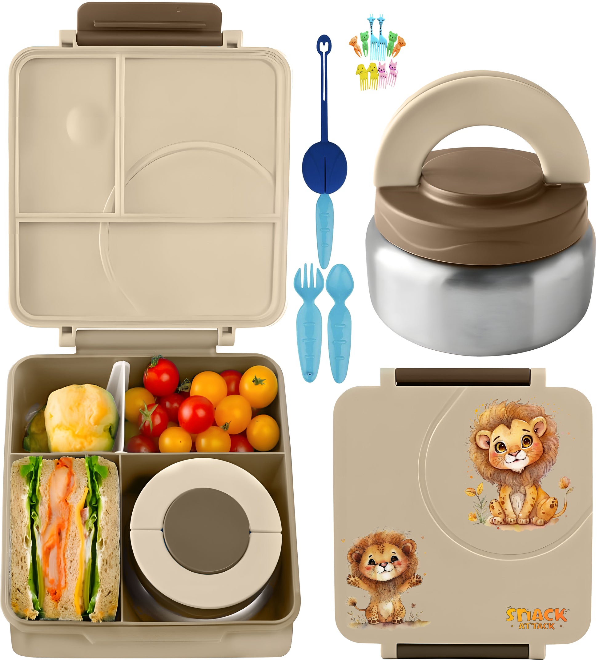 Khaki Lion Bento Lunch Box with 9.7oz Thermos