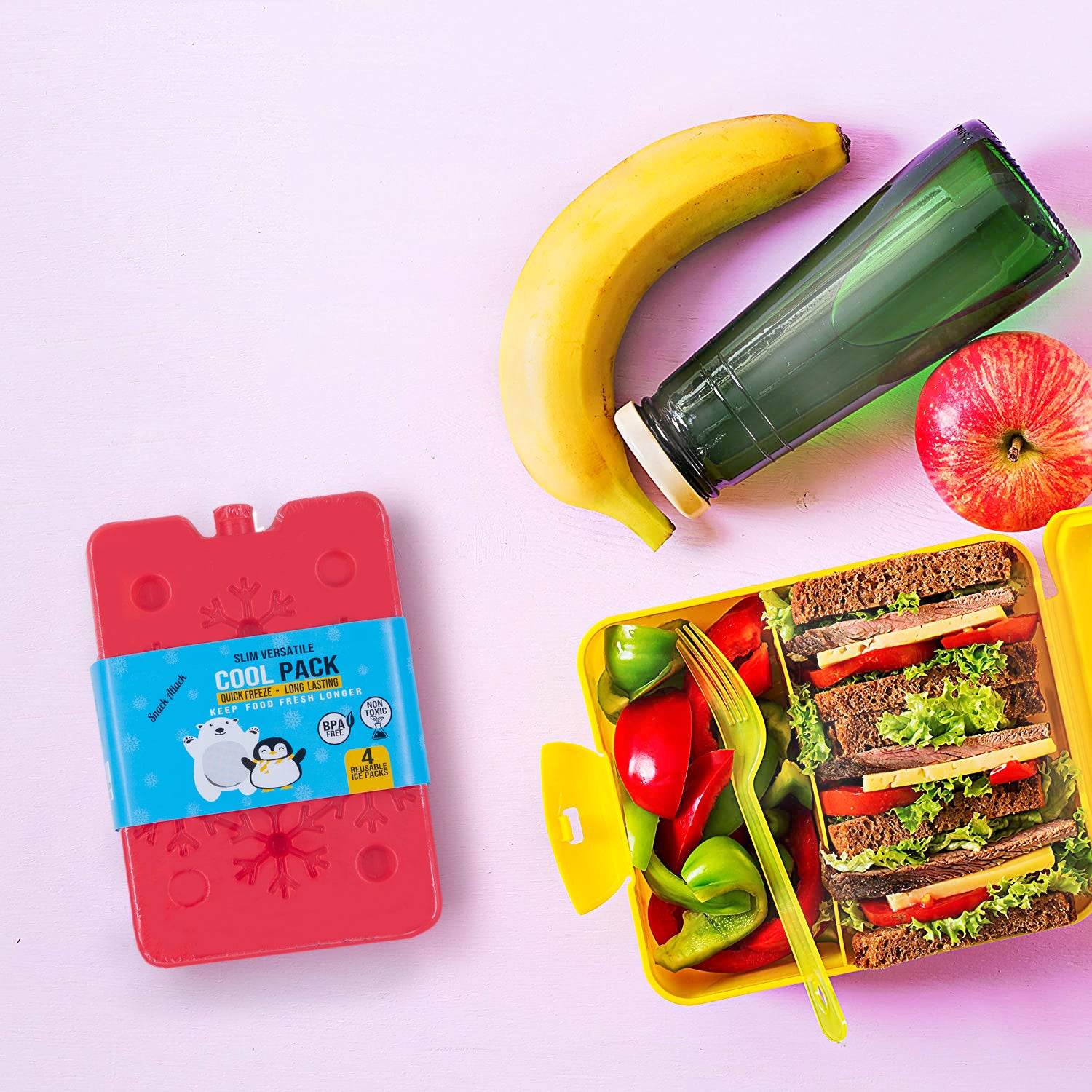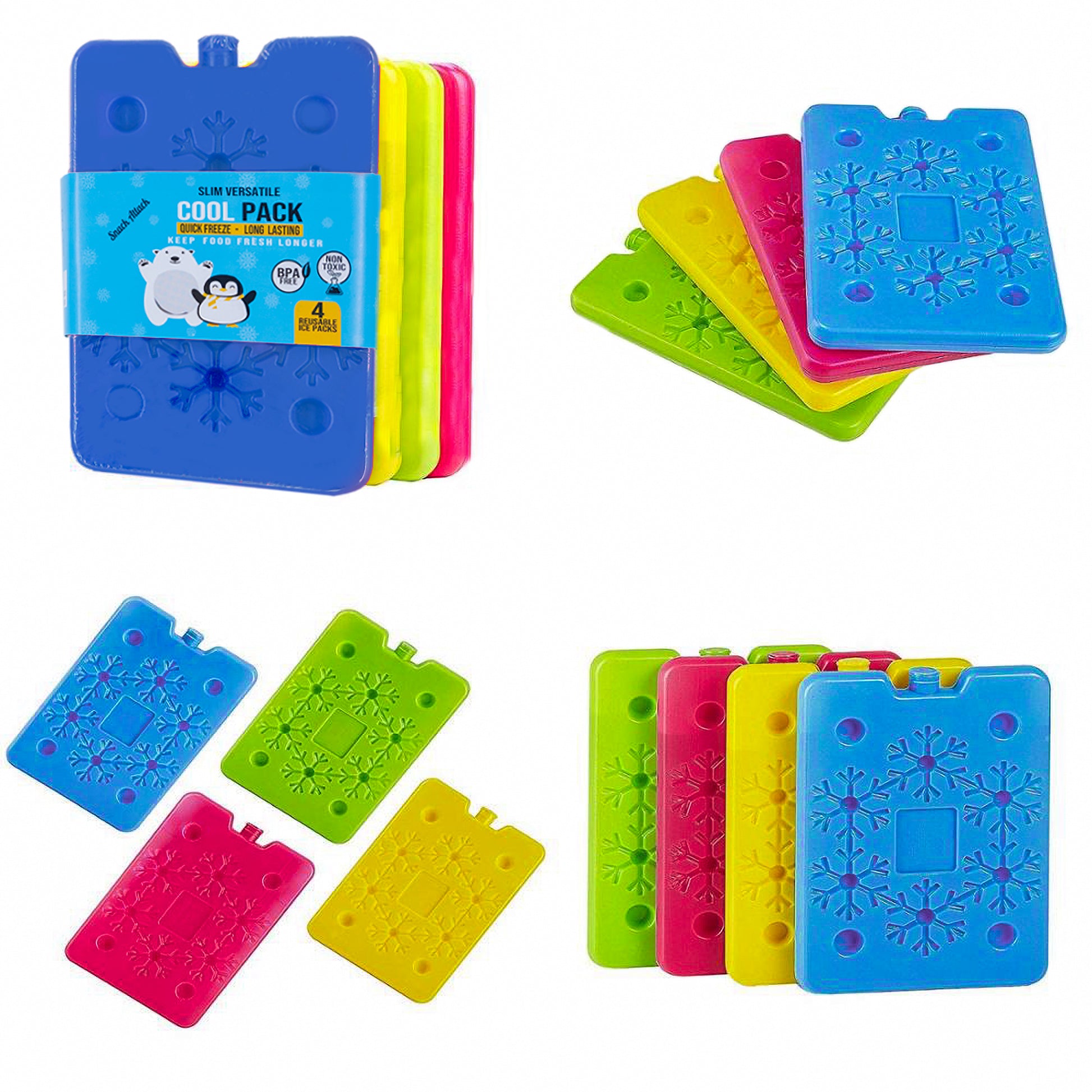 - SAFE FOR EVERYDAY - Useable Snack Attack cool Ice Packs are leak-proof, sturdy and made of 100% BPA-free food-grade HDPE shell, filled with non-toxic gel.