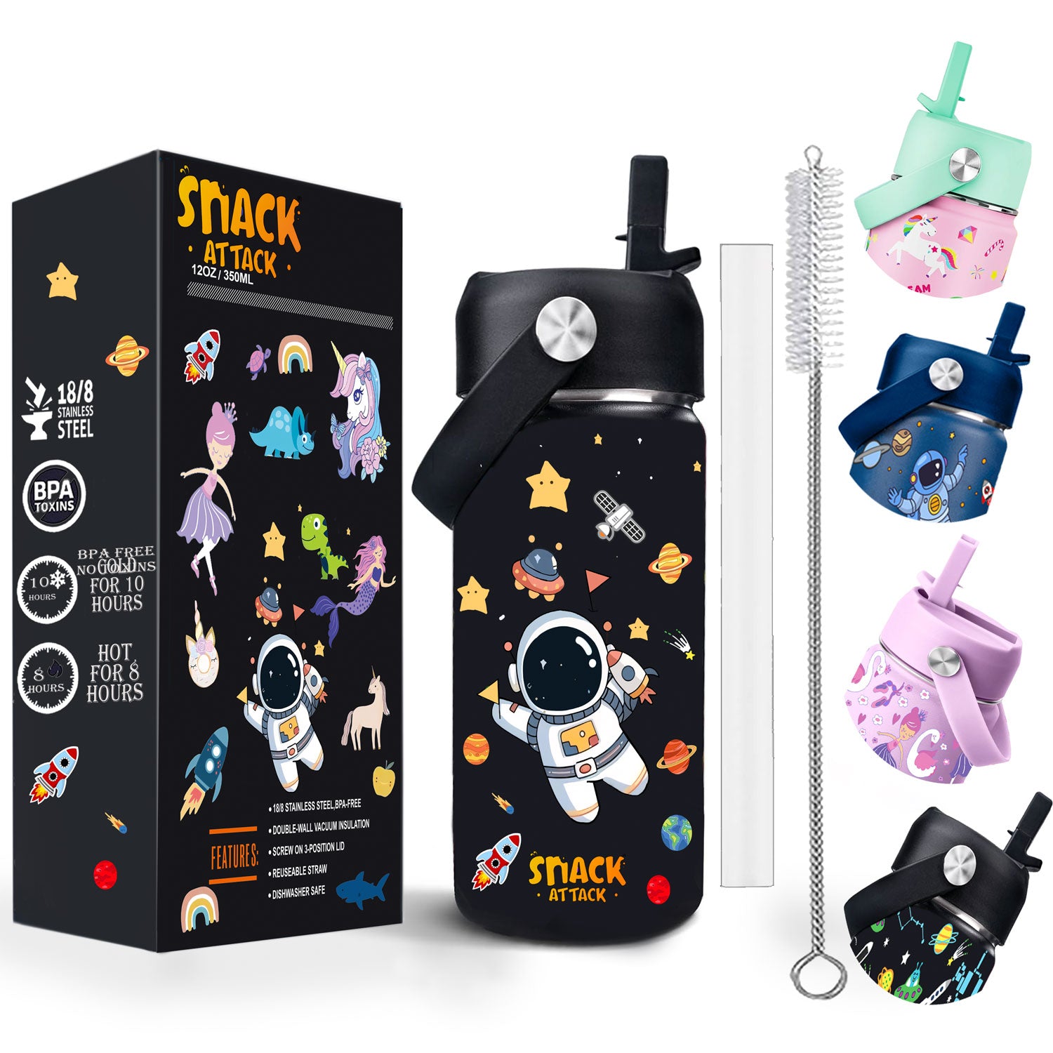 - ★IDEAL GIFT GIVING & GUARANTEE: The Snack Attack team is committed to providing superior insulated water bottles for kids. It's an ideal gift for your kids for birthdays, Children's Day, Christmas, New Year, and back to school. Just choose these cute cups with kids favorite patterns and keep kids beverages high quality and fresh. Easy and fun to use for kids. Our team offers superior customer service, high-quality materials, and a lifetime warranty. Any questions, send us your issues for a solution.