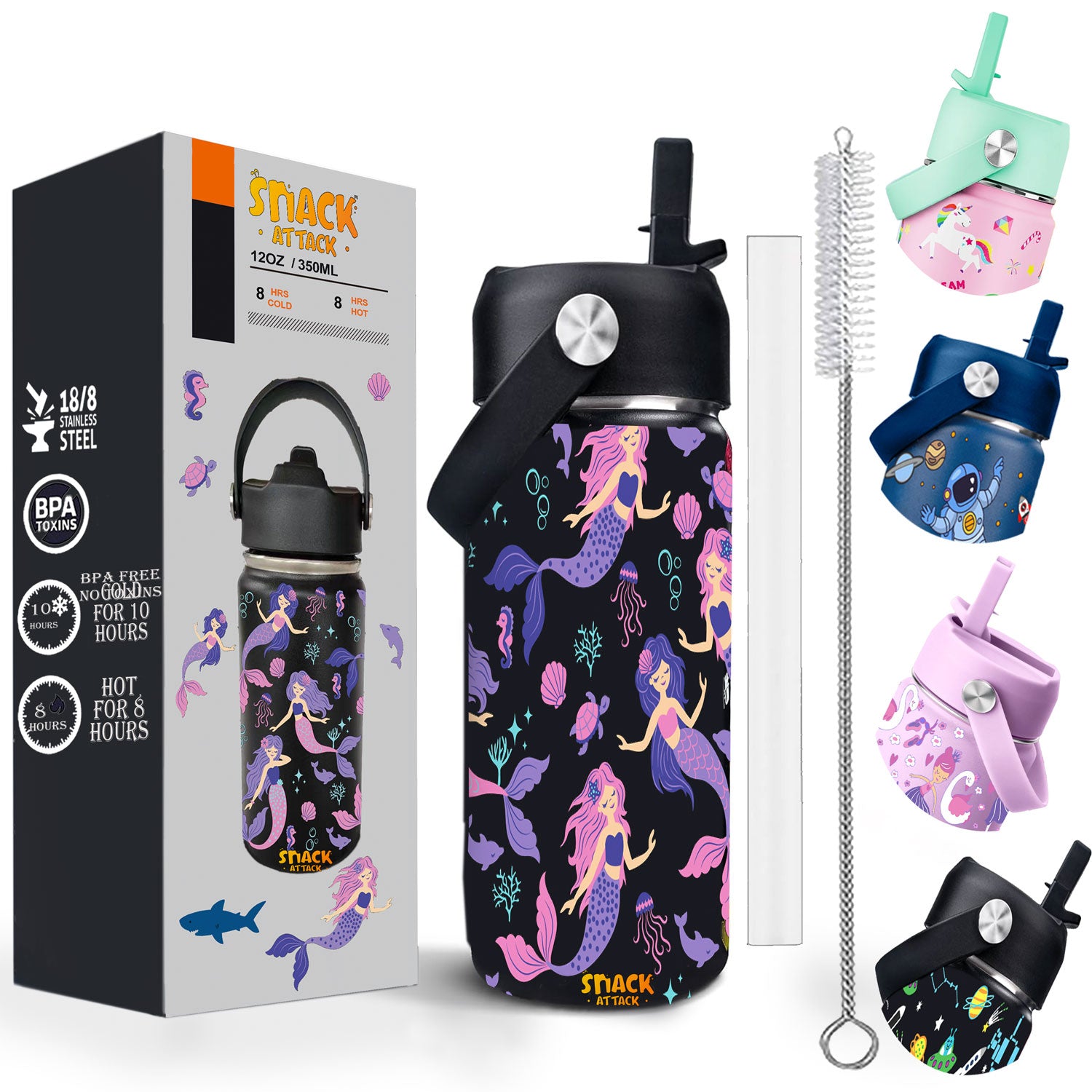 - ★IDEAL GIFT GIVING & GUARANTEE: The Snack Attack team is committed to providing superior insulated water bottles for kids. It's an ideal gift for your kids for birthdays, Children's Day, Christmas, New Year, and back to school. Just choose these cute cups with kids favorite patterns and keep kids beverages high quality and fresh. Easy and fun to use for kids. Our team offers superior customer service, high-quality materials, and a lifetime warranty. Any questions, send us your issues for a solution.