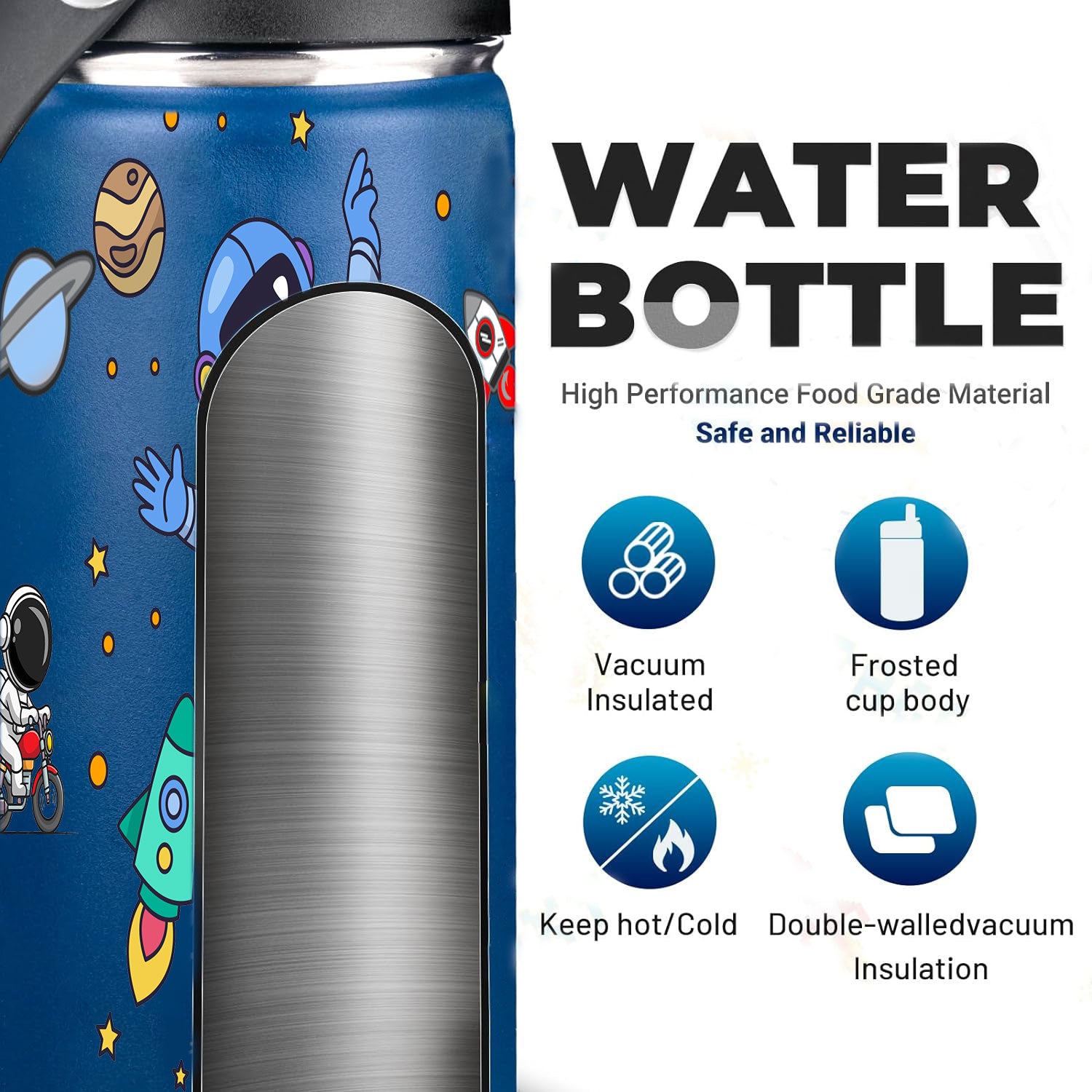- ★DOUBLE WALLED VACUUM INSULATED: With double-walled vacuum insulation, these kids cups can preserve beverage temperature up to 24 hours for cold and 12 hours for hot. In addition, the double walled design makes the bottle sweat-free, allowing to carry kids favorite drinks around to keep them hydrated without making messes. Also, the top mouth is wide enough for convenient refilling and inserting ice cubes or fruits. This is designed to preserve the quality and temperature of kids beverage!
