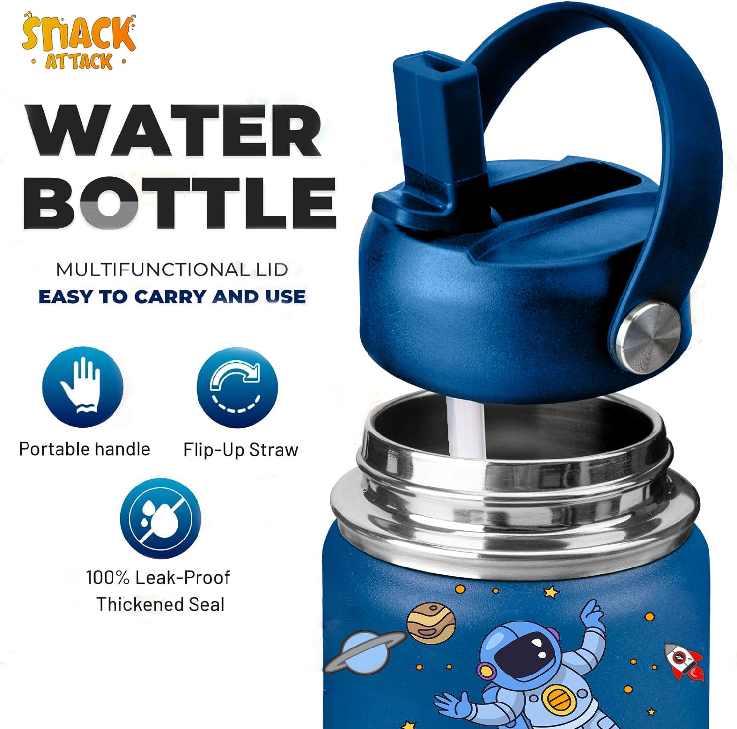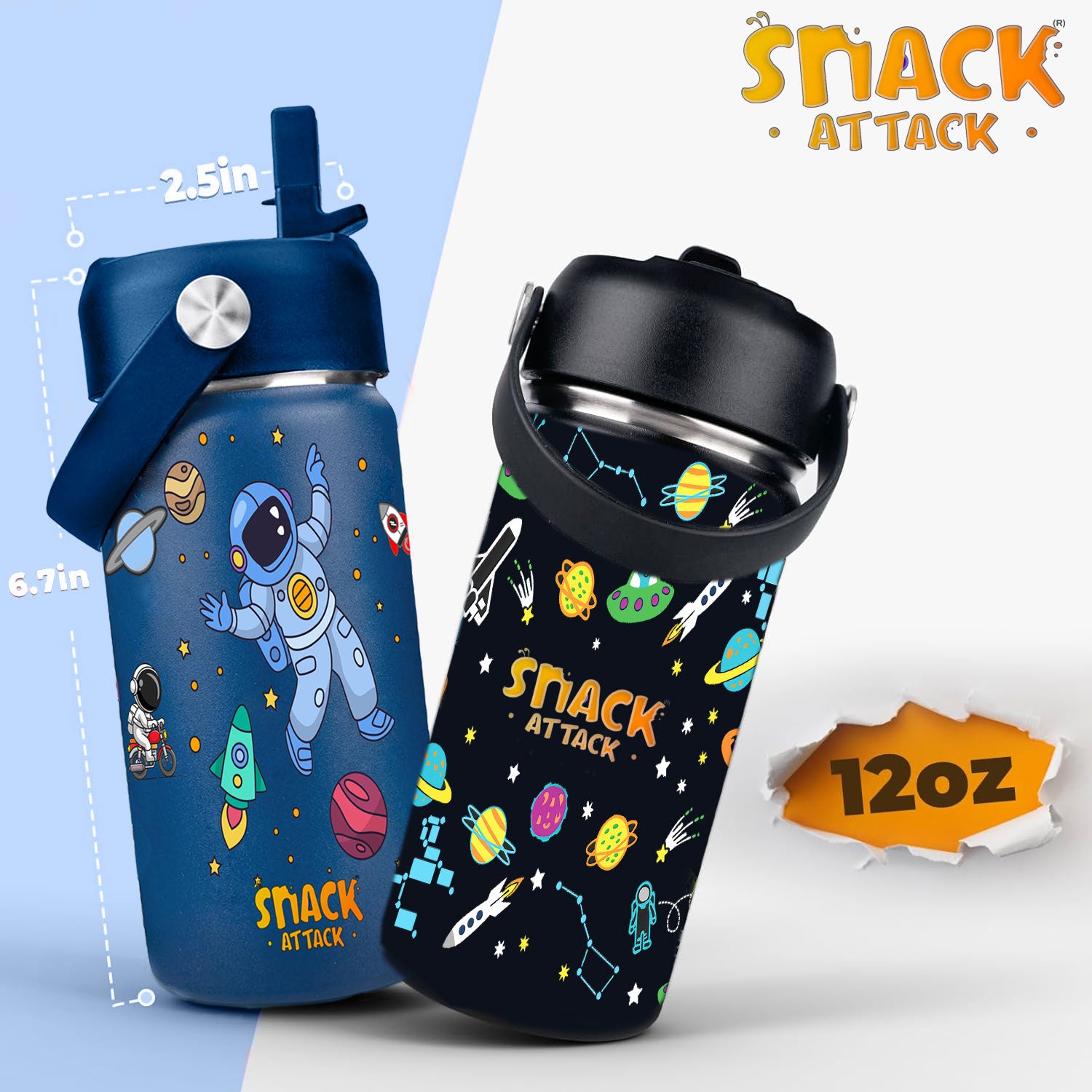 - ★IDEAL GIFT GIVING & GUARANTEE: Snack Attack team is committed to provide superior kids insulated water bottles. It's an ideal gift for your kids for Birthday, Children's Day, Christmas, New Year, Back to School. Just choose this cute cups with kids favorite patterns and keep kids beverages quality and fresh. Easy and fun to use for kids. Our team offers superior customer service, high-quality materials, and a life-time warranty. Any questions, send us your issues for solution.