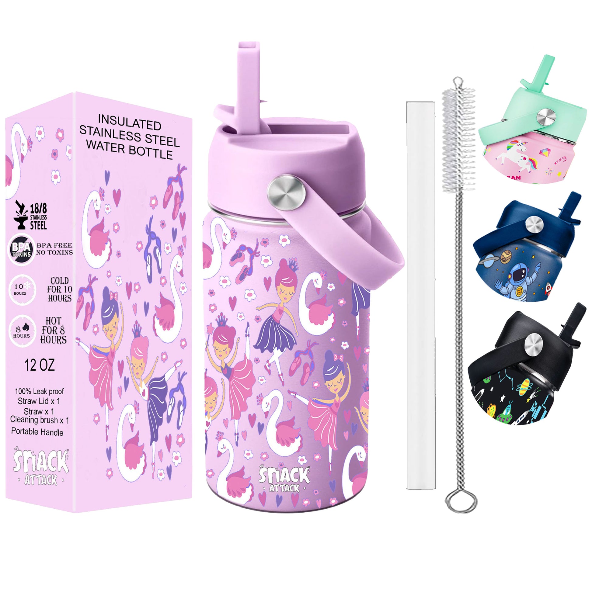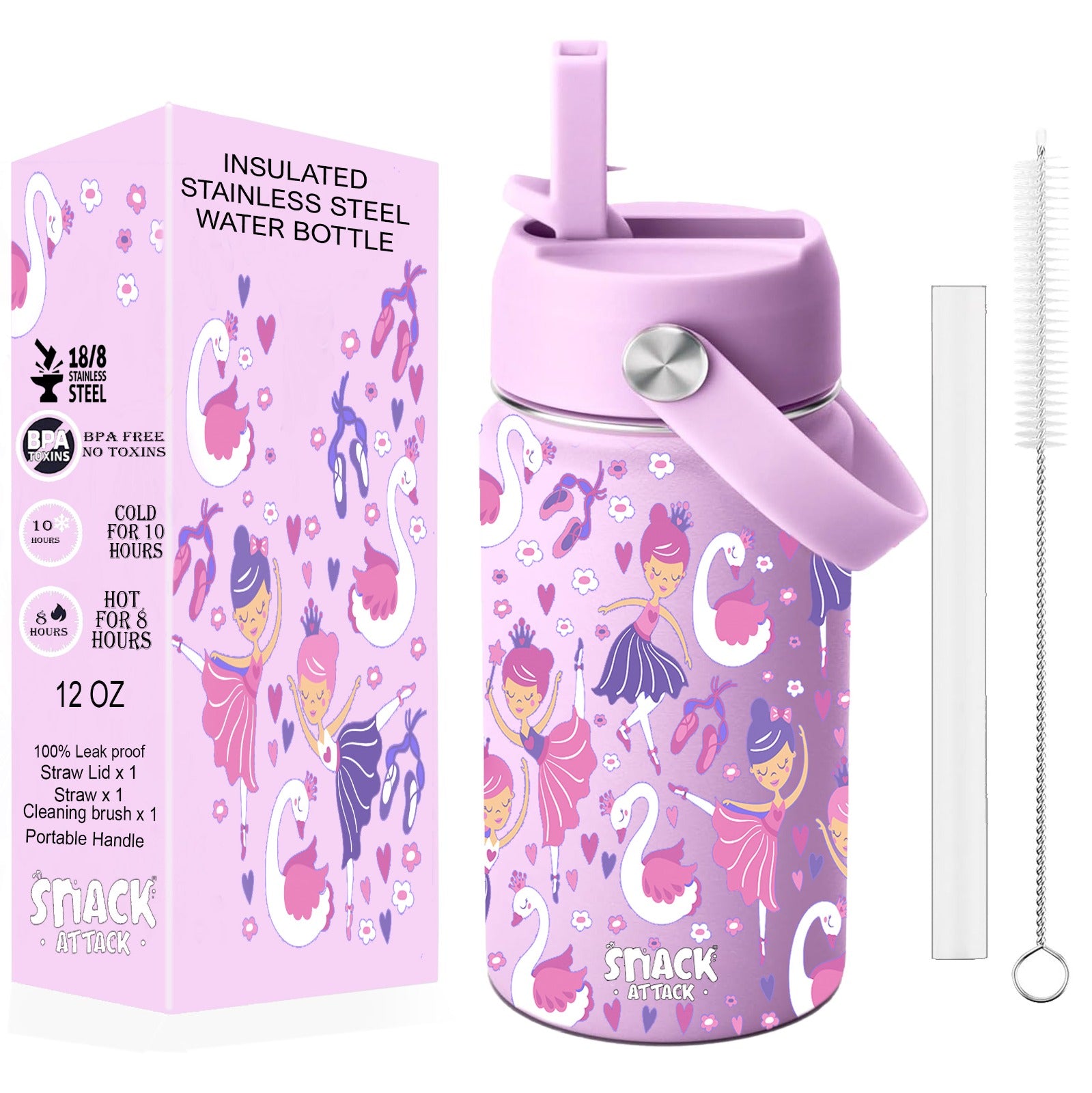 Snack Attack Kids Insulated Water Bottle-12oz (Lilac Ballerina)