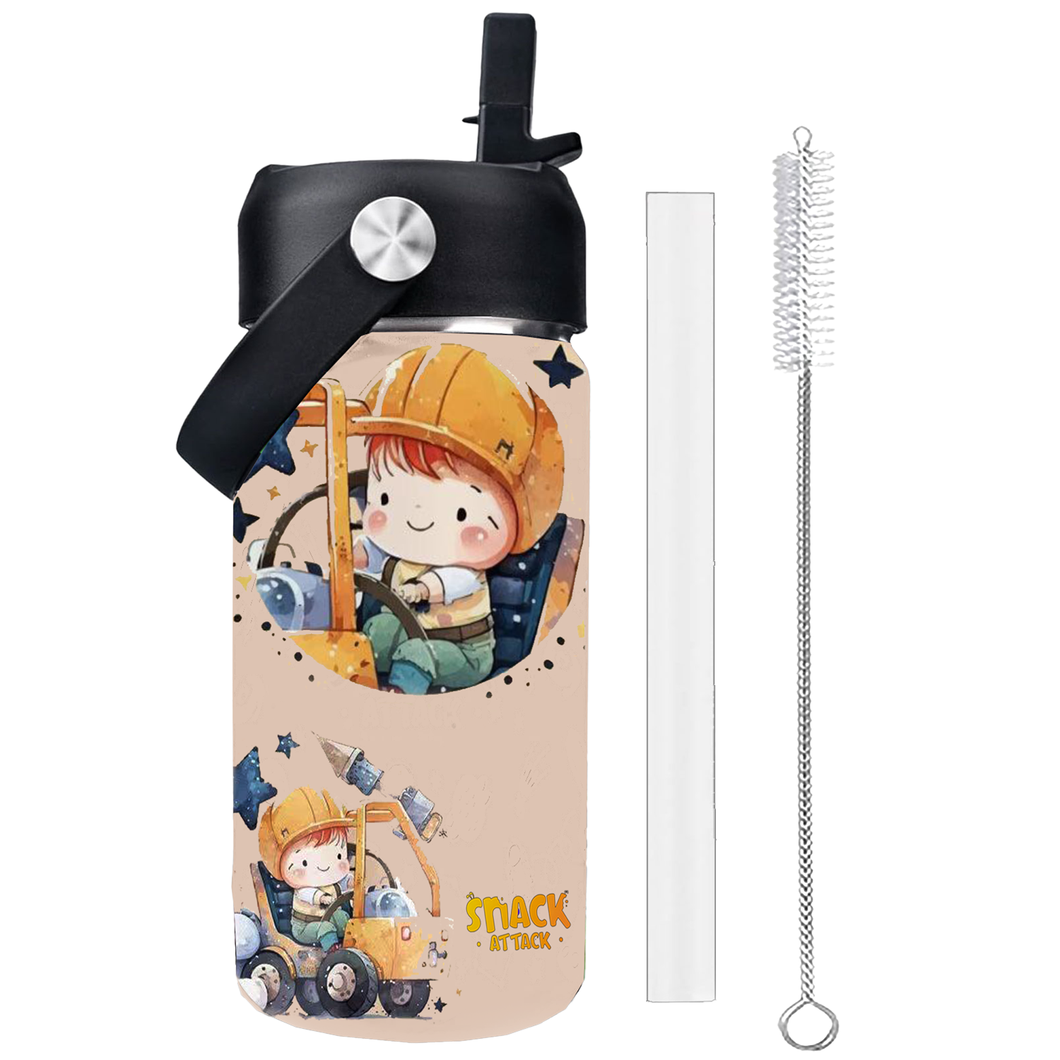 Snack Attack Kids Insulated Water Bottle-12oz Brown Construction 350ml