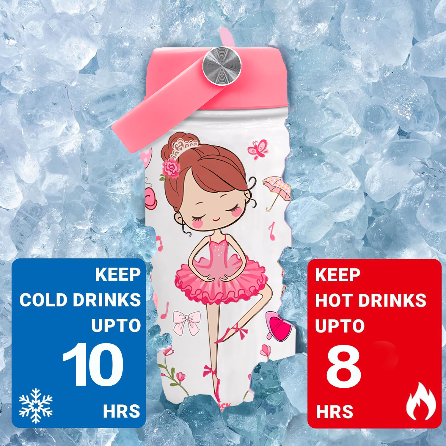 Snack Attack Kids Insulated Water Bottle-12oz White Ballerina Dancing Doll 350ml