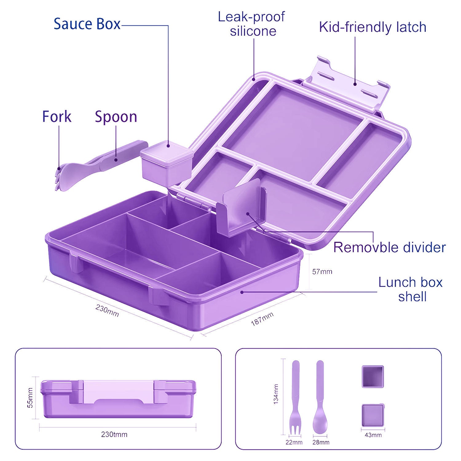 Lunch Box for Kids with Compartments: Capacity: 1330 ml with 5 compartments; serve main food, fruit, salad, and sauce separately. helps the kids balance nutrition and control food distribution.