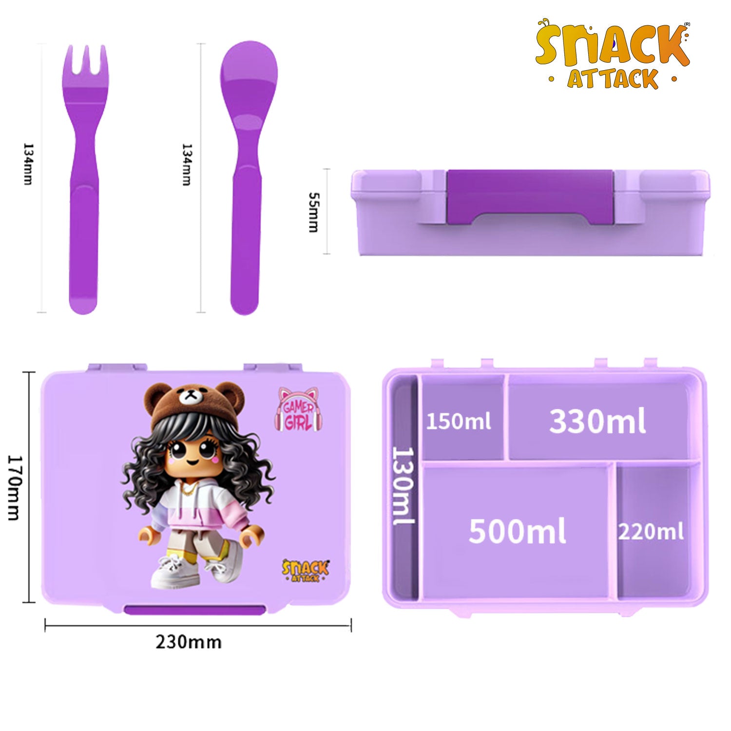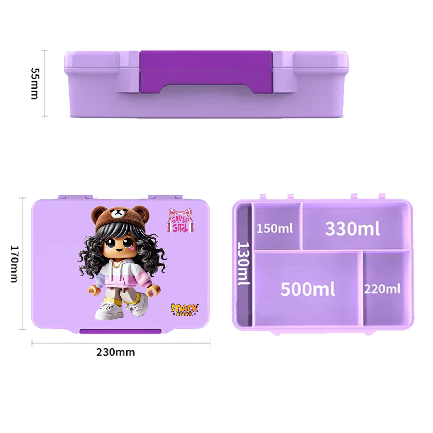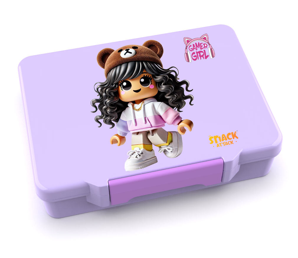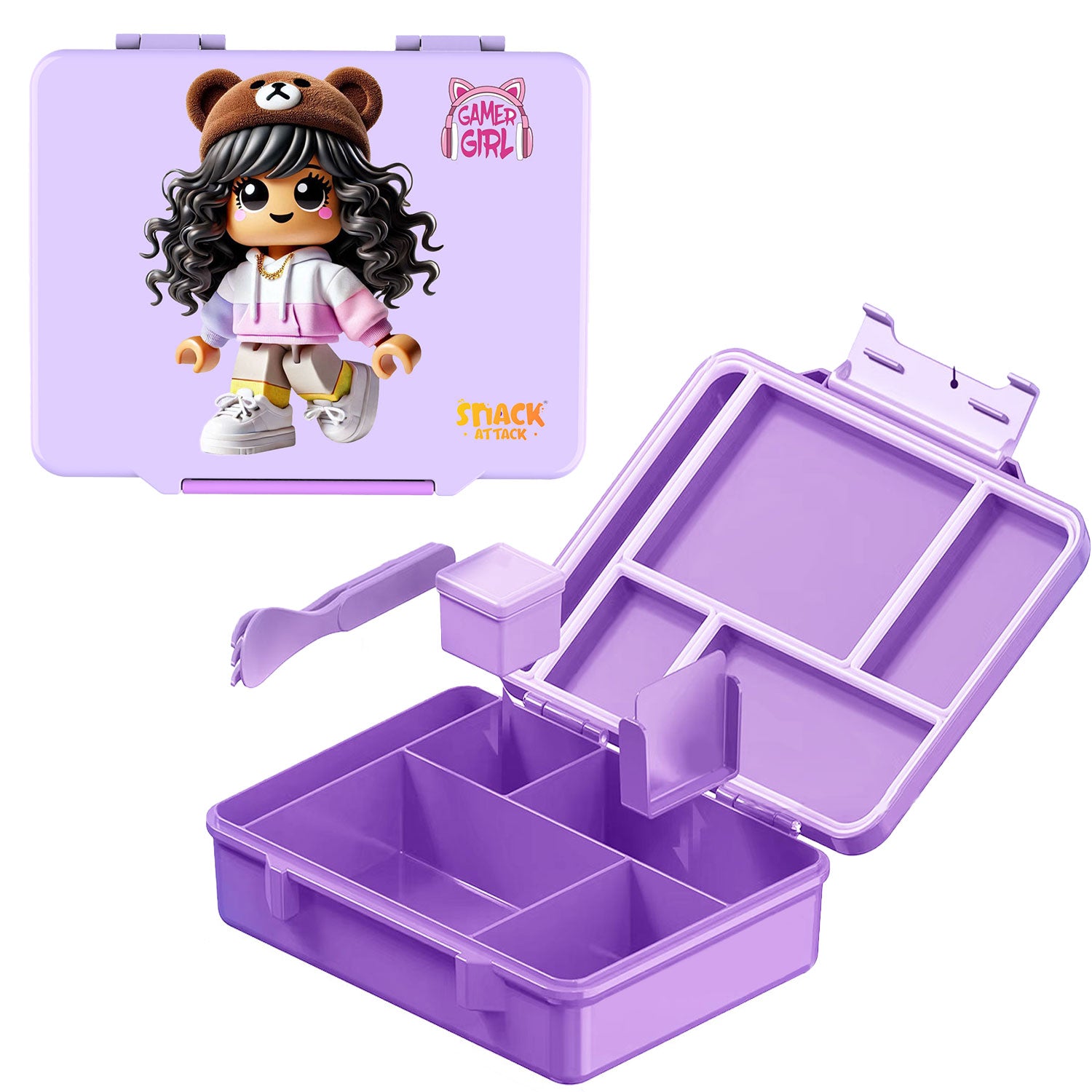Snack Attack Light Purple Gamer Girl Bento Lunch Box – 5 Compartments