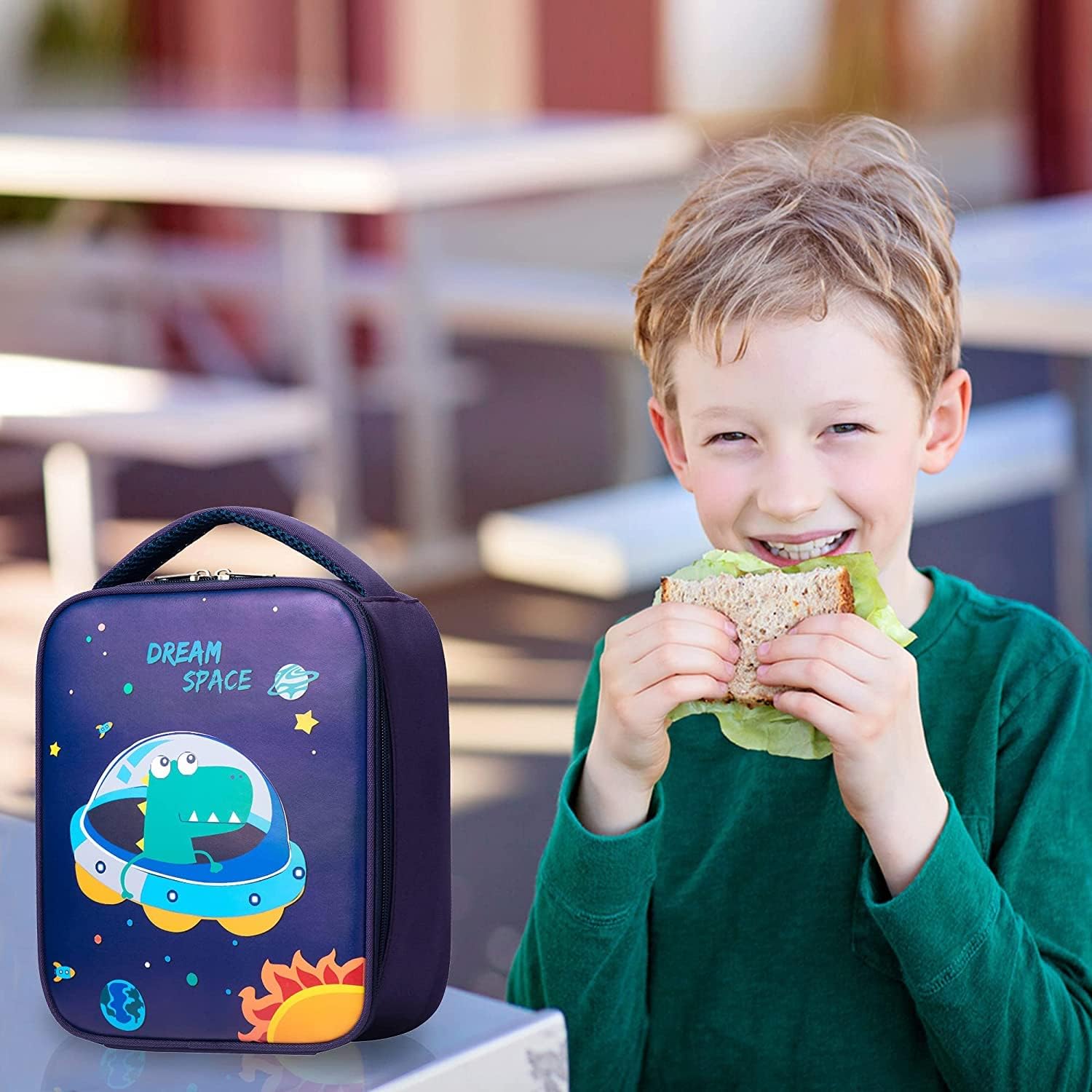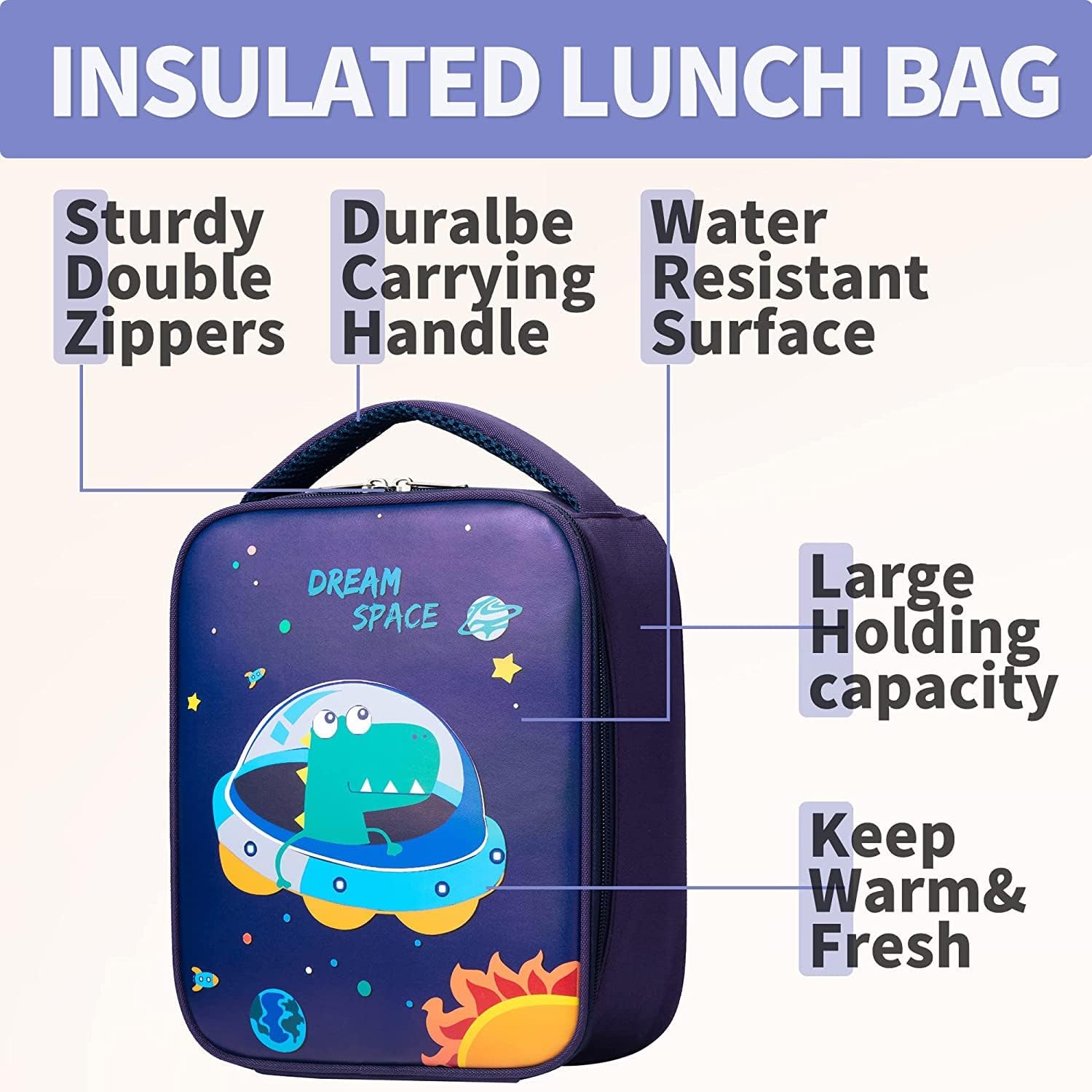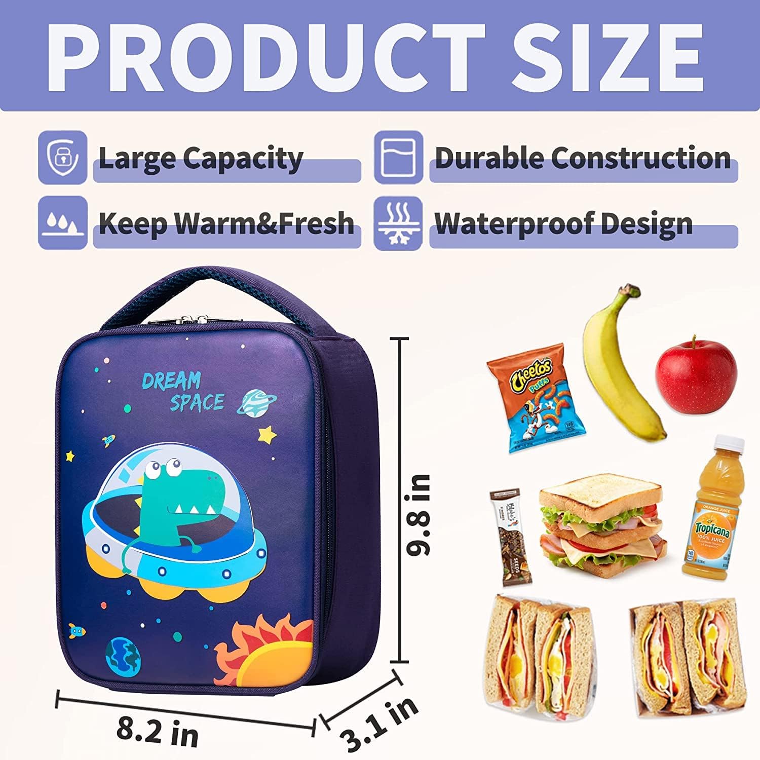 - ★【5L CAPACITY & STYLISH DESIGN】 -- With the perfect size of 9.5" H x 7.9" W x 4.3" D, one side pockets and inner pocket, this boys lunch bag offers a generous 5L storage space, enough for kids’ or an adult’s hearty lunch and drink.