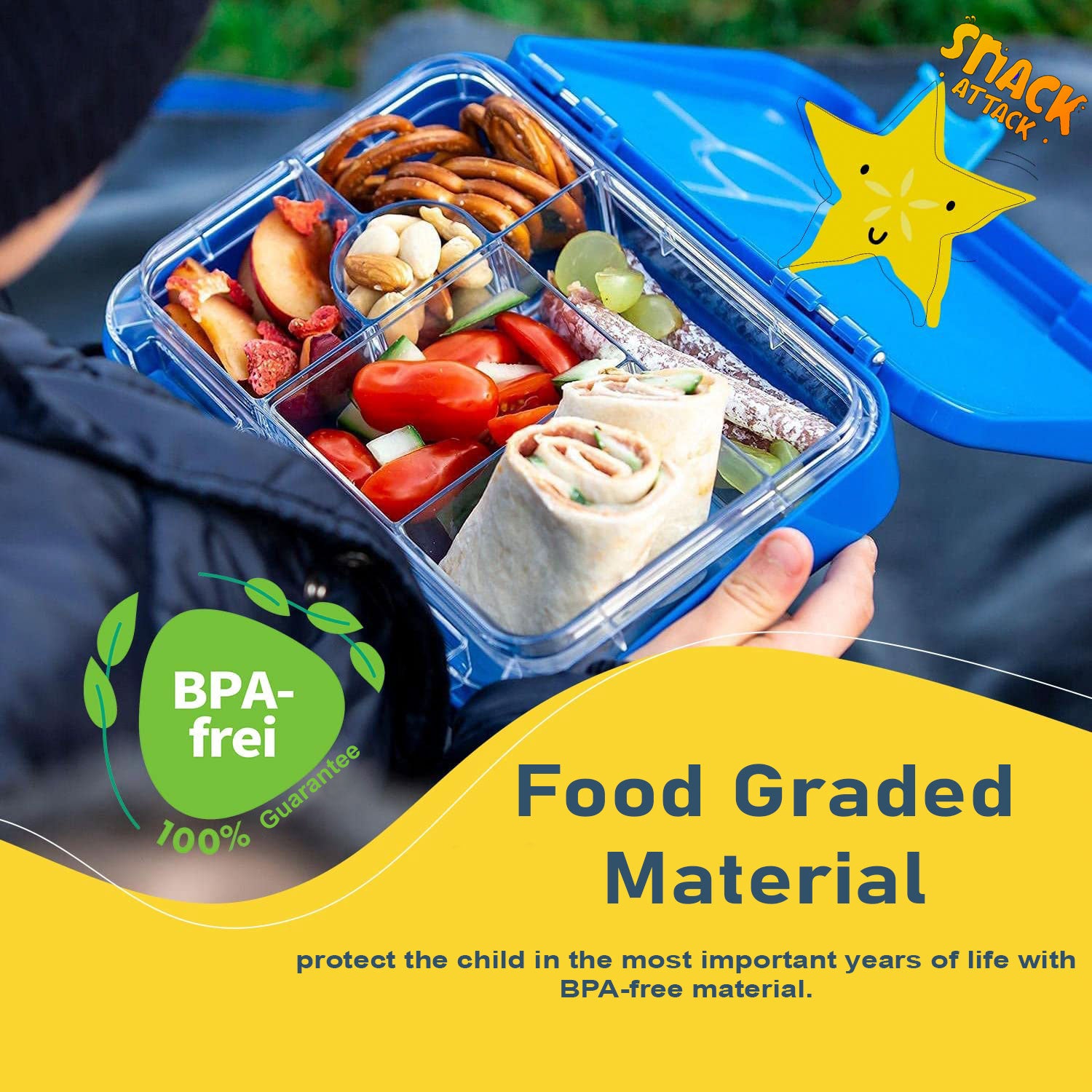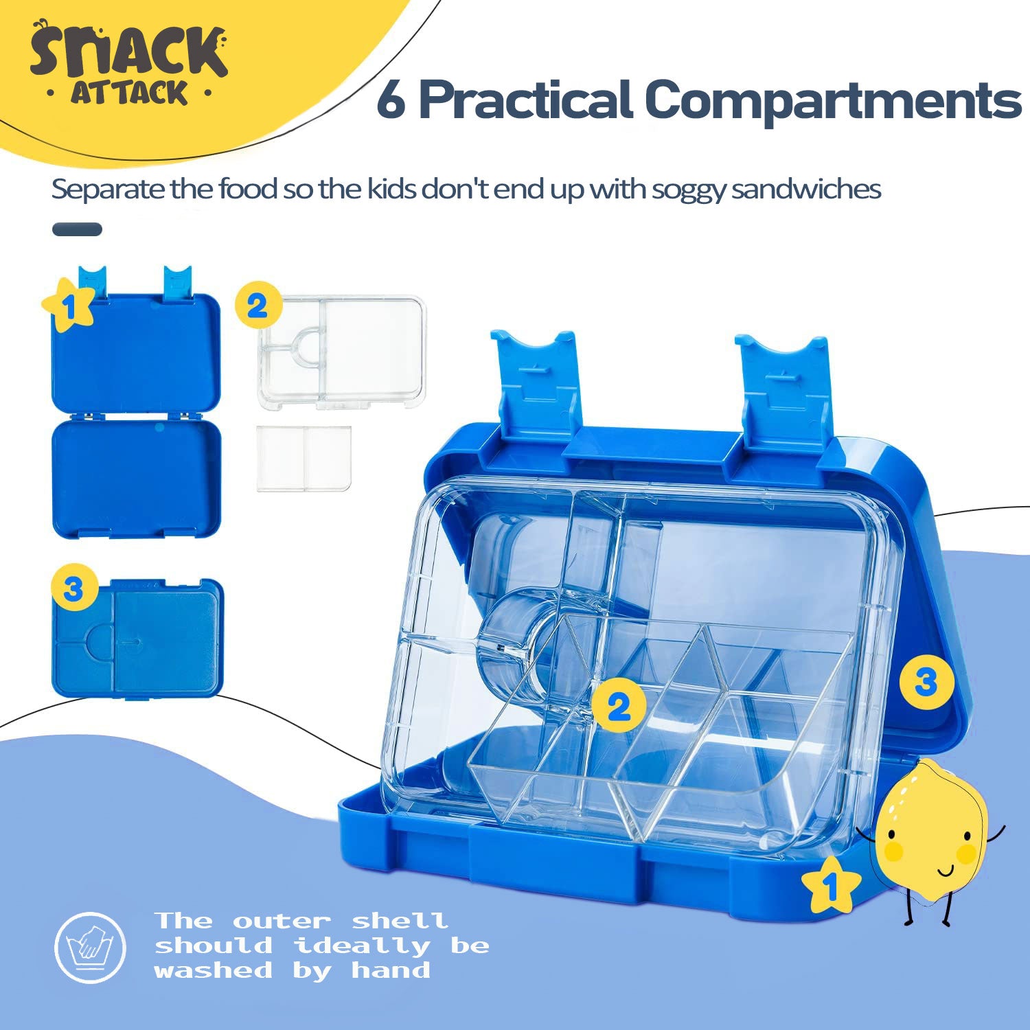 Snack Attack lunch box Bento style for kids school 6/4 Convertible Compartment is perfect for young children (toddlers-age 14). It offers variety and promotes healthy eating habits. Snack Attack Bento Style lunch box is perfect kids school for picky eaters. Pack small portions of your child's favorite foods, or bite size pieces of sandwiches. Its compact size and convertible compartment make easy for mum to change the child's favorite foods on daily basis in good nutrition. Six 1/2 cup of portions (approximately 2.75 cups) of the key food groups plus dip/treat well. Pack wet foods like yogurt and dips (not water) This Snack Attack is for kids that like variety. It s perfect for picky eaters. BPA FREE, DISHWASHER SAFE, MICROWAVE SAFE (INNER TRAY)