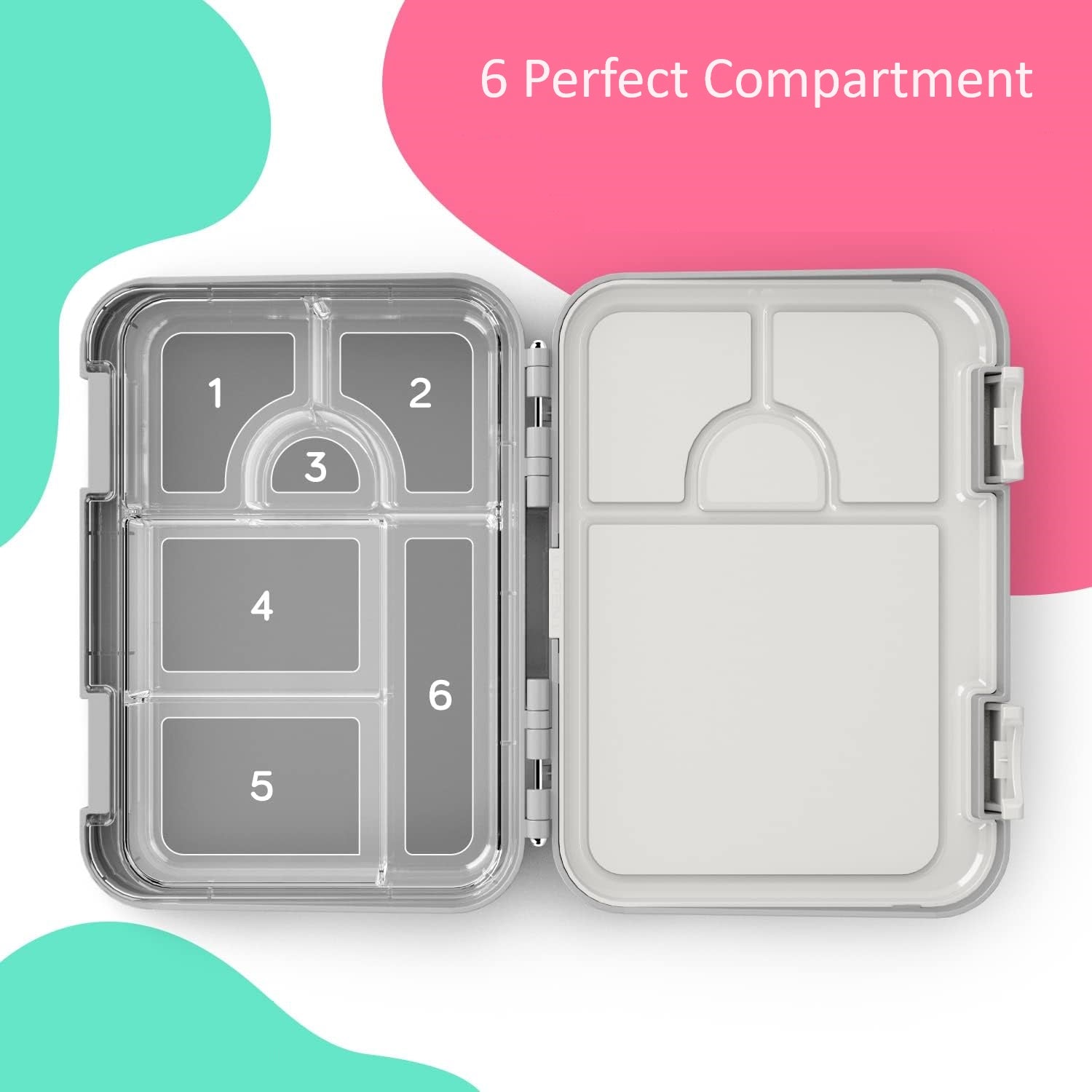 Gray Bento Lunch Box for Kids – 4/6 Compartments