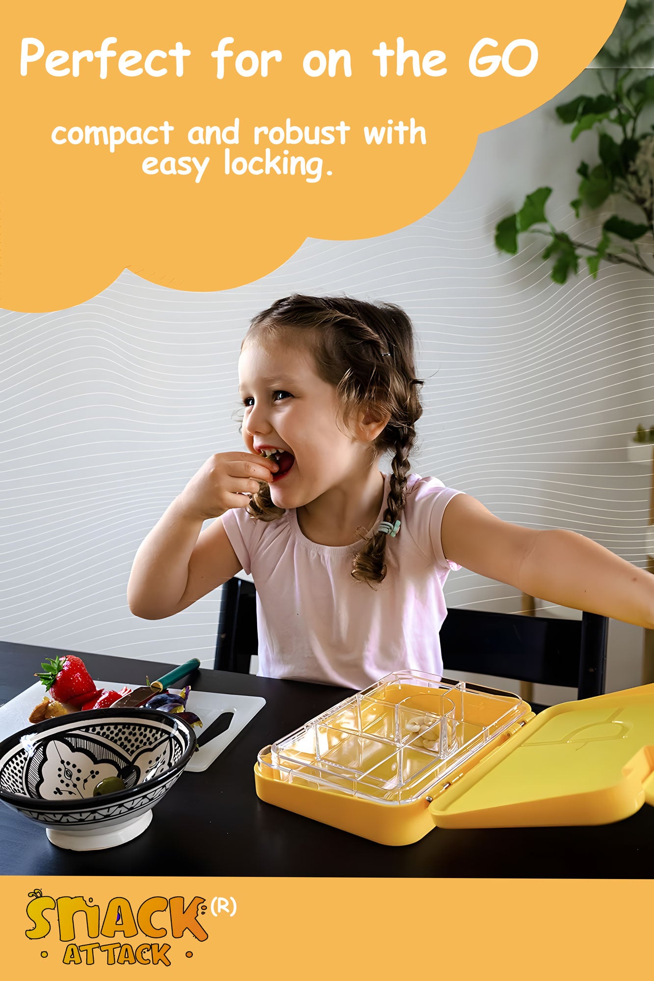 Snack Attack lunch box Bento style for kids school 6/4 Convertible Compartment is perfect for young children (toddlers-age 14). It offers variety and promotes healthy eating habits. Snack Attack Bento Style lunch box is perfect kids school for picky eaters. Pack small portions of your child's favorite foods, or bite size pieces of sandwiches. Its compact size and convertible compartment make easy for mum to change the child's favorite foods on daily basis in good nutrition. Six 1/2 cup of portions (approximately 2.75 cups) of the key food groups plus dip/treat well. Pack wet foods like yogurt and dips (not water) This Snack Attack is for kids that like variety. It s perfect for picky eaters. BPA FREE, DISHWASHER SAFE, MICROWAVE SAFE (INNER TRAY)
