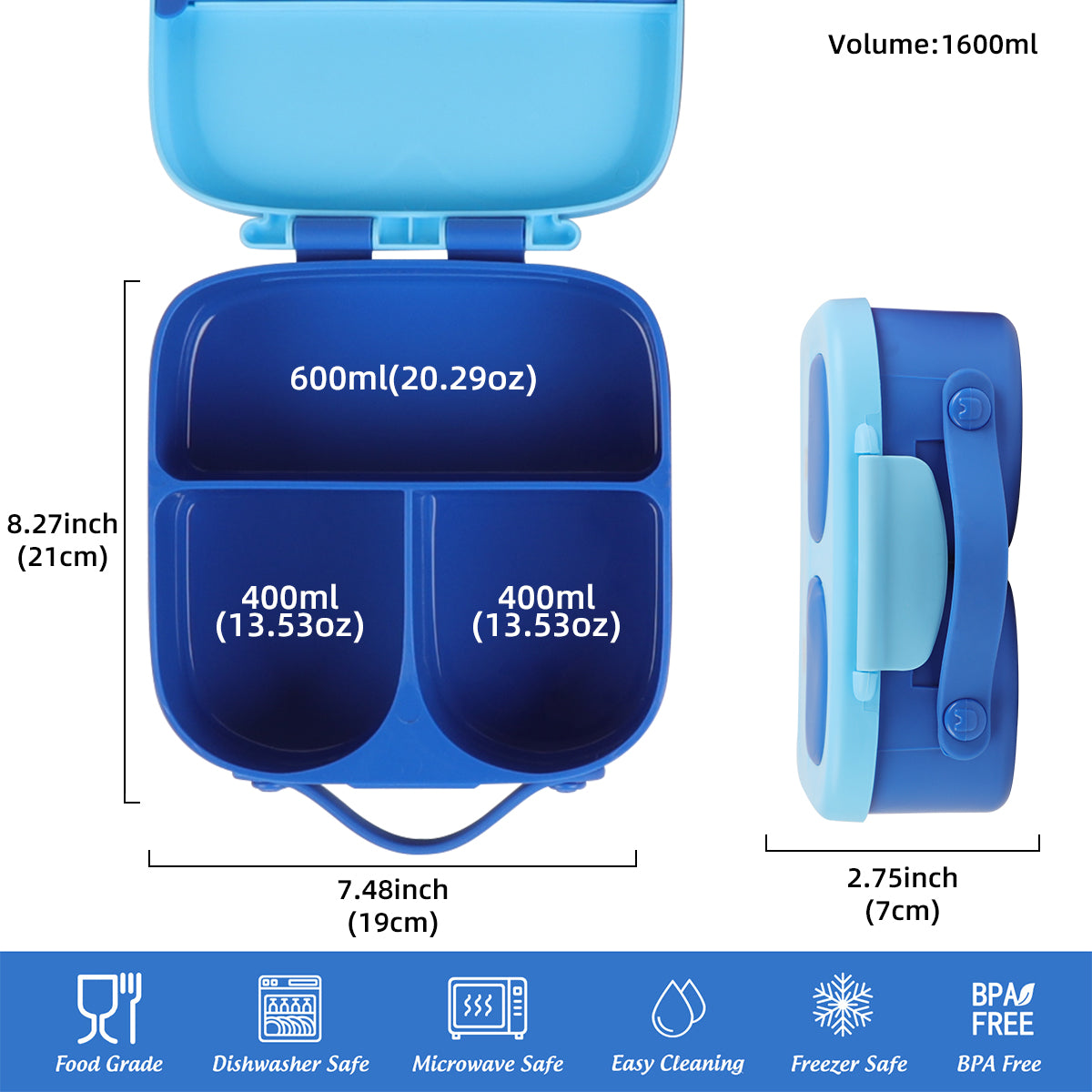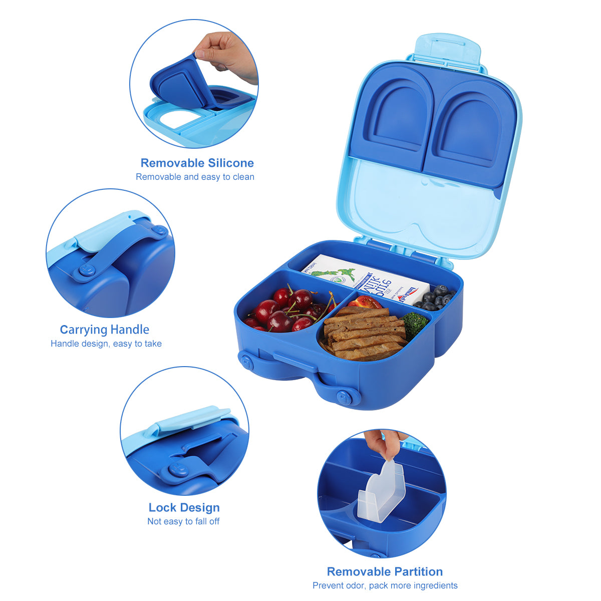 Snack Attack TM Lunch Box Bento style Bunny Shape Blue Color for Kids 3/4 Convertible Compartments BPA FREE LEAK PROOF Dishwasher Safe Back to School Season Food Graded Materials Portable Bunny Shale Silicone BPA Free Kids Lunch Box Back to School Bento Box for Children.